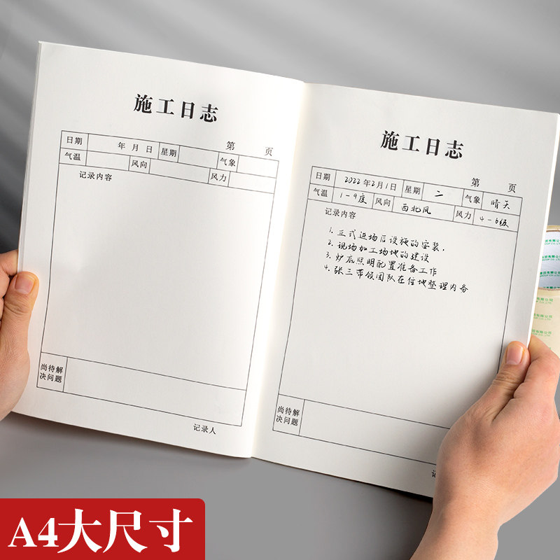 50本施工日志记录本建筑工地a4工程日记本16k安全监理工作地进度装修手册新版通用加厚单双面定制订做印logo