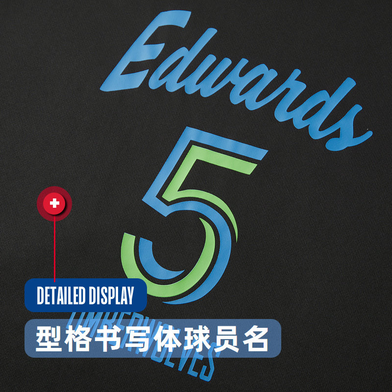 NBA球员号码系列森林狼安东尼 爱德华兹 春季中性黑色T恤