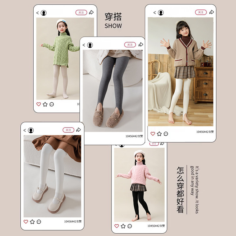 女童打底裤秋冬加绒连裤袜外穿宝宝打底袜春秋薄绒加厚儿童舞蹈袜