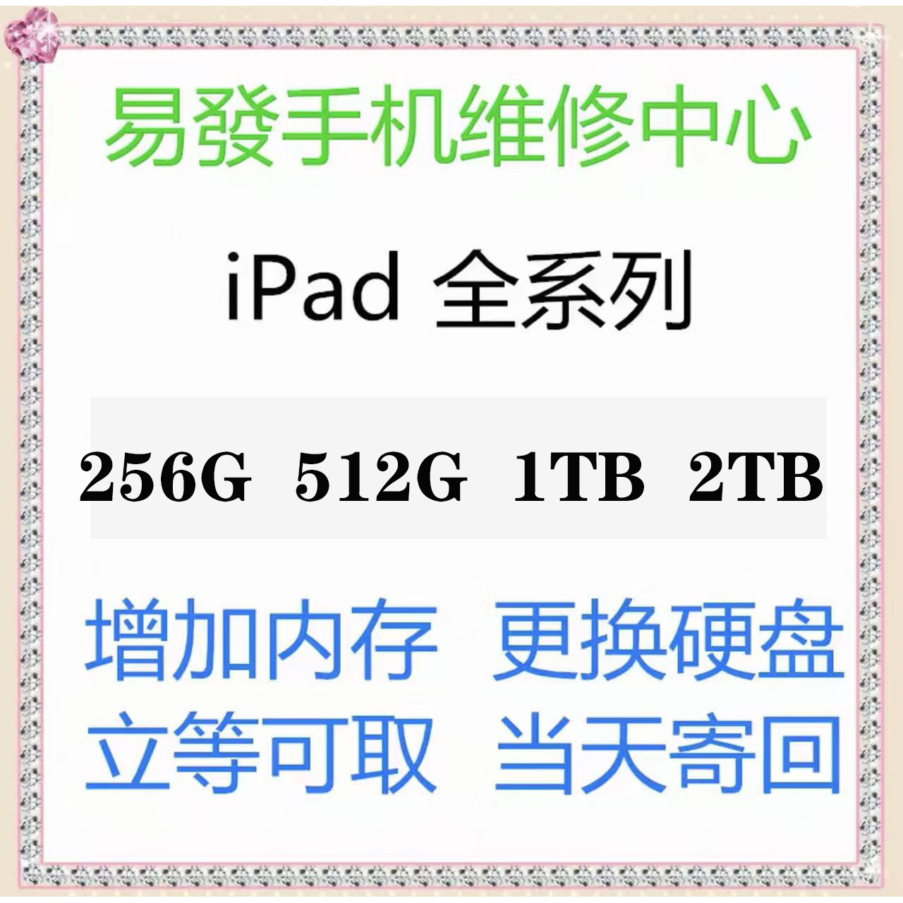 iPadAir567Mini6Pro13寸M1M2M3M4扩容512G增加内存1TB升级2TB硬盘