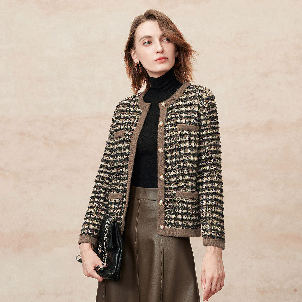 【商场同款】FINITY菲妮迪26年新款羊毛衫简约小香风针织开衫女士