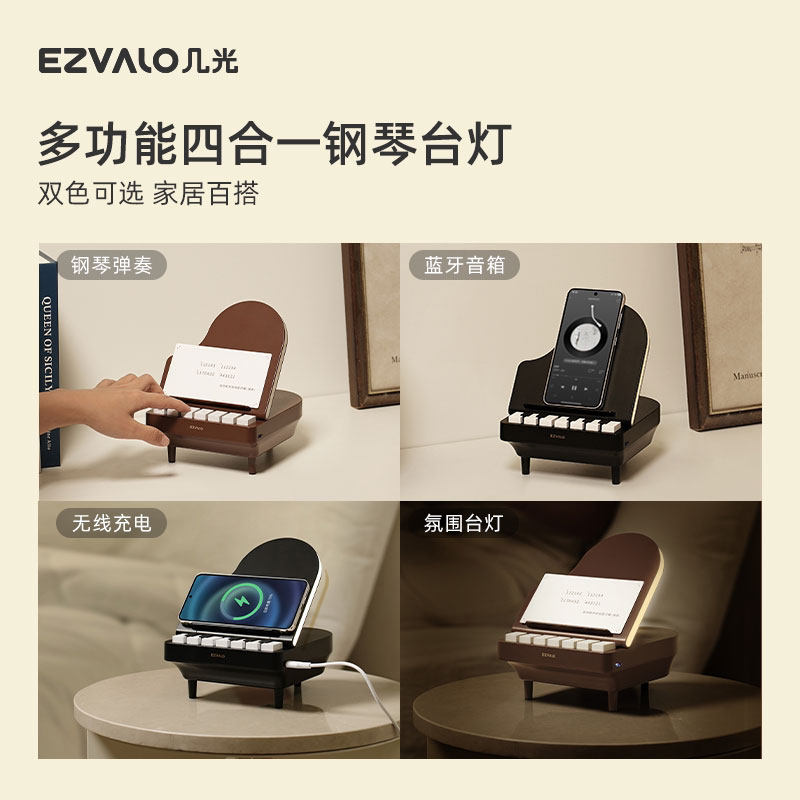 EZVALO/几光 钢琴蓝牙音箱手机无线充电便携式多功能氛围夜灯礼物