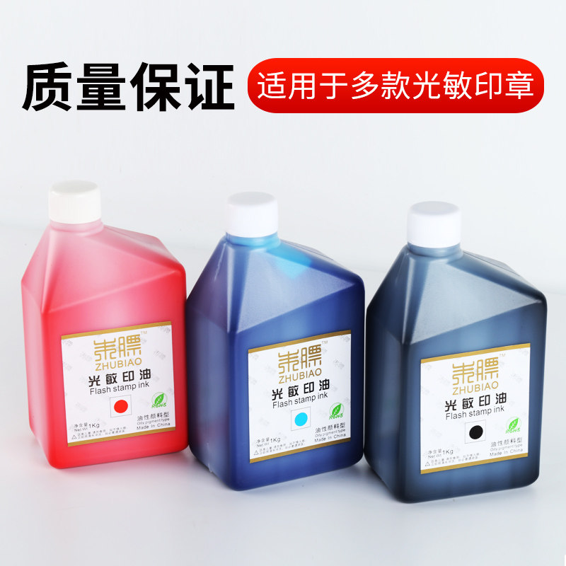 朱膘光敏印油1kg大桶装红色深蓝色黑色光敏印油大瓶印章油墨1000C