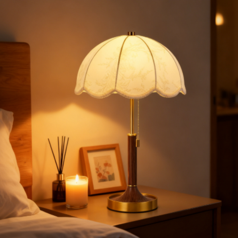 复古台灯卧室床头灯法式美式布艺书房主卧高级感氛围灯护眼客厅