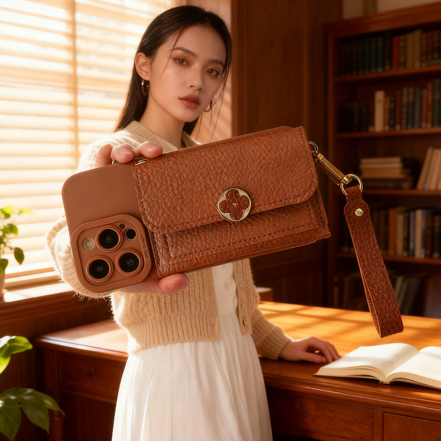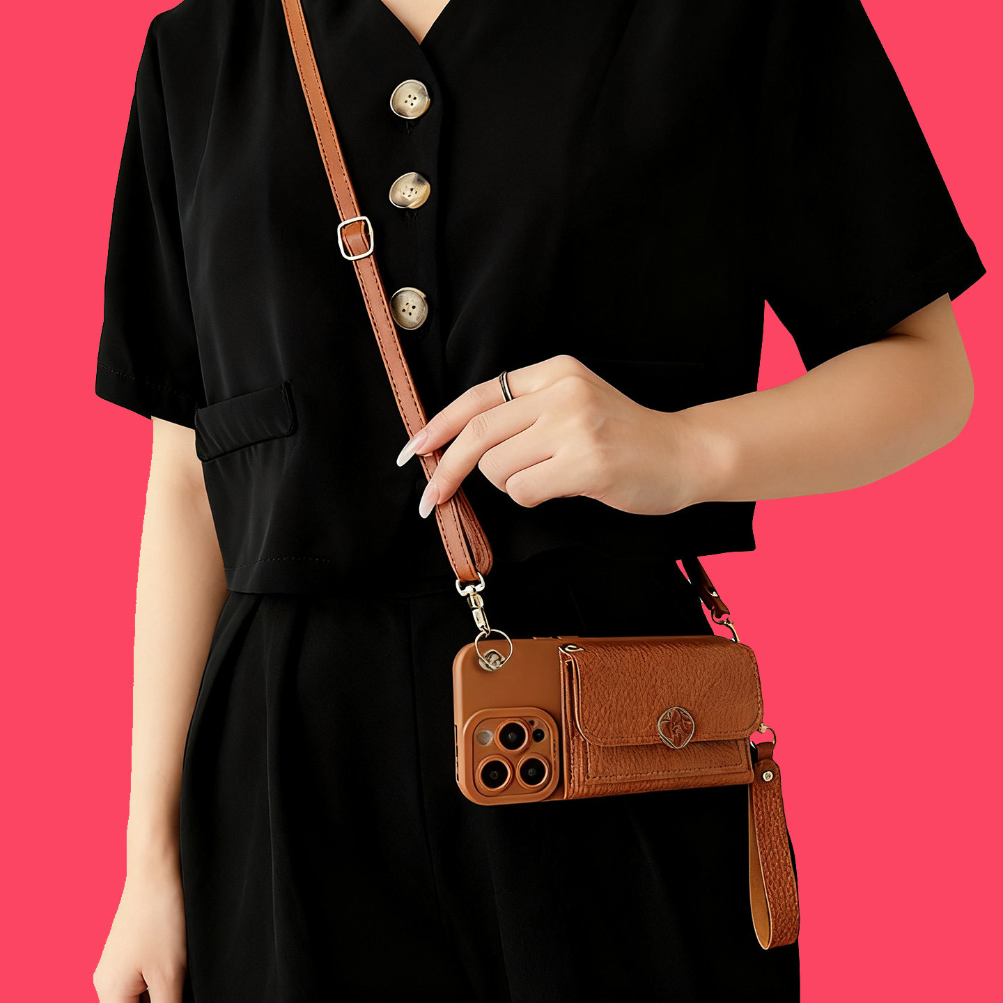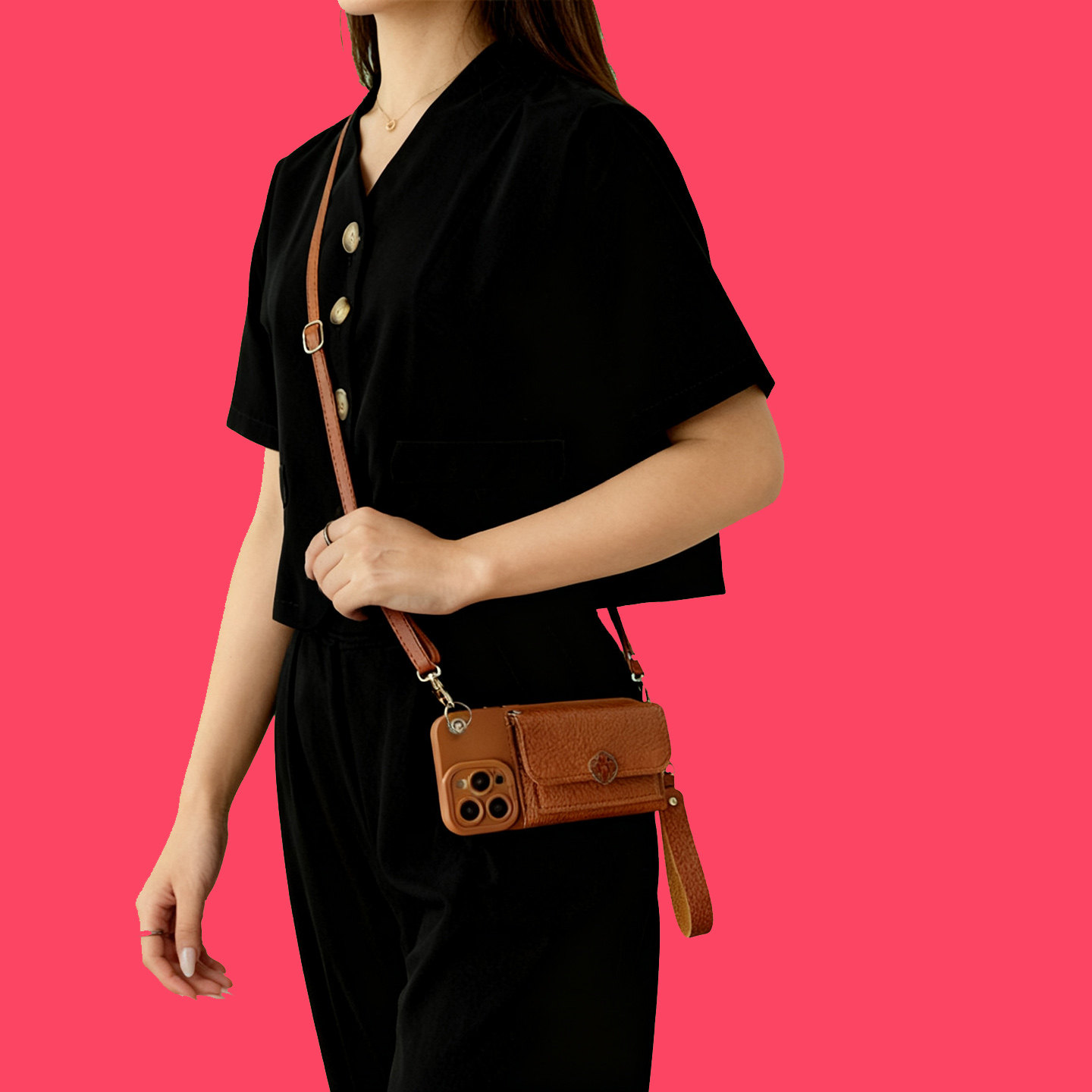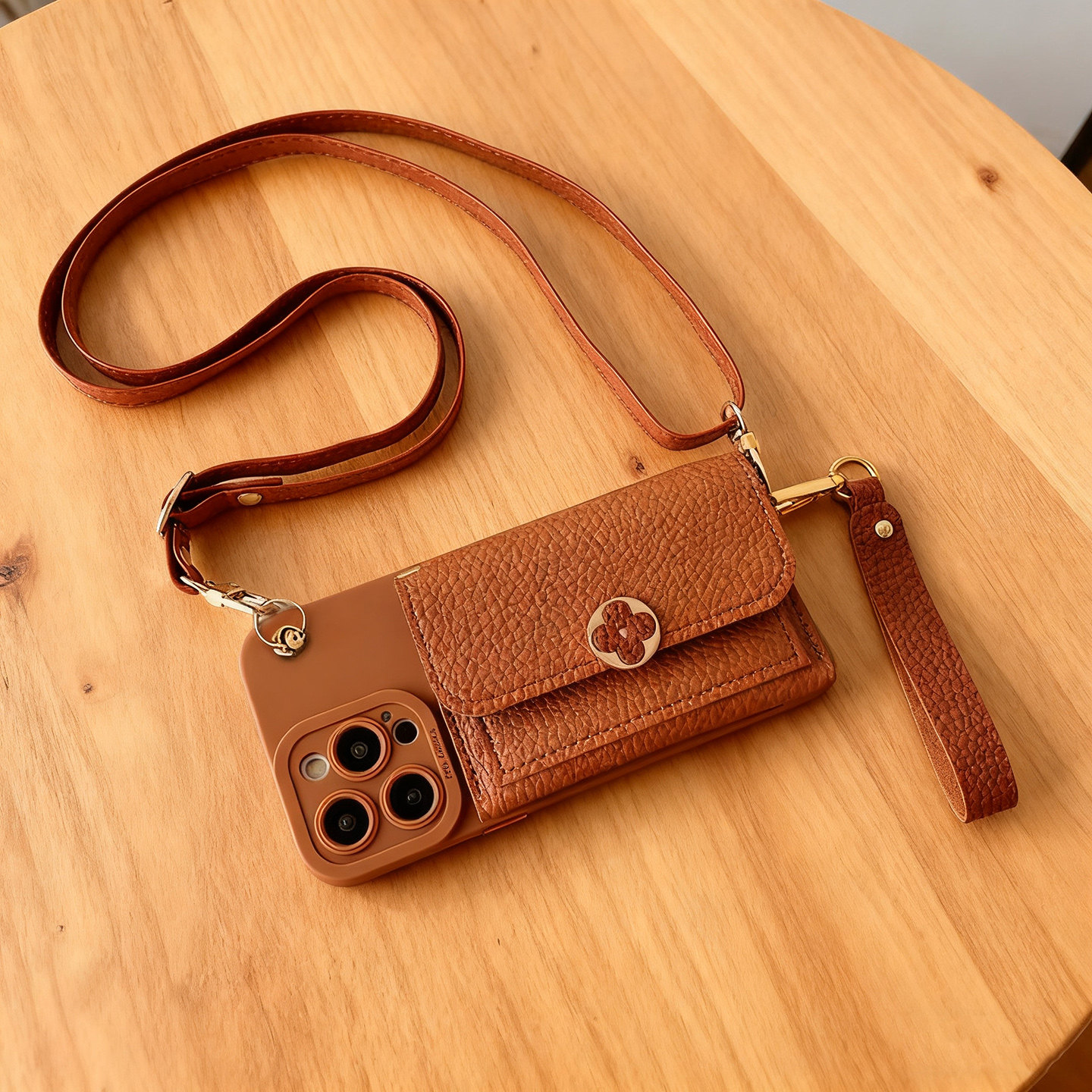 适用iPhone16手机壳17 ProMax苹果15 14Plus零钱包13手提皮卡包套Air背带挂绳12 11 Promax棕色XS斜挎XR女款8