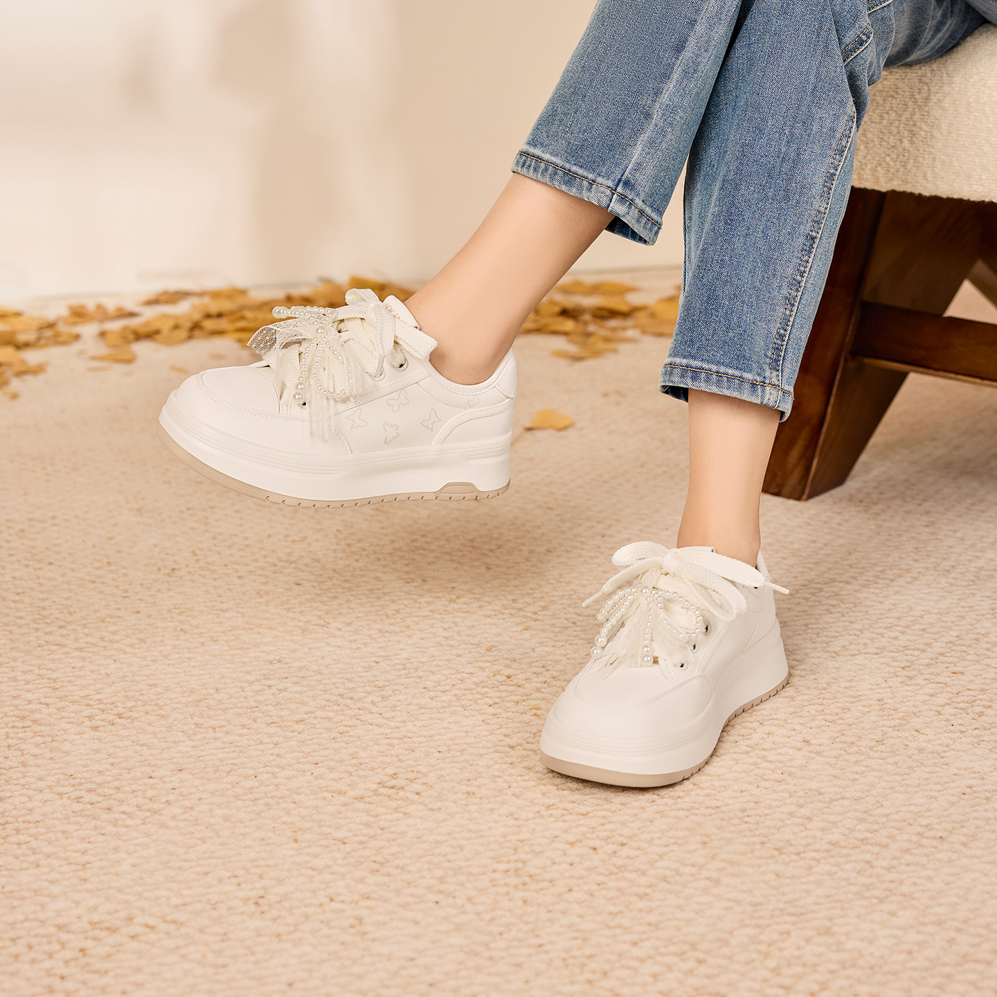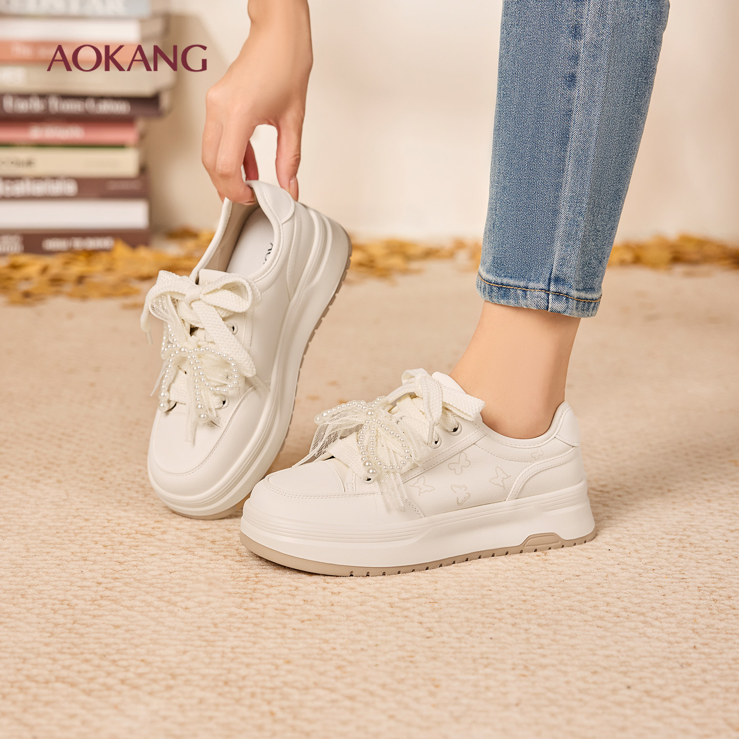 奥康 女鞋2025秋季板鞋甜美双鞋带纯色蝴蝶仙女风休闲鞋门店发货