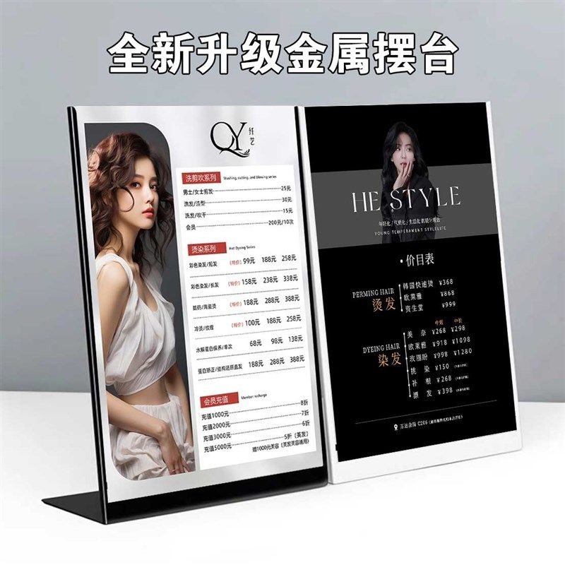 美容院开业充值台卡美甲u美睫价目表定制设计美发半永久桌展