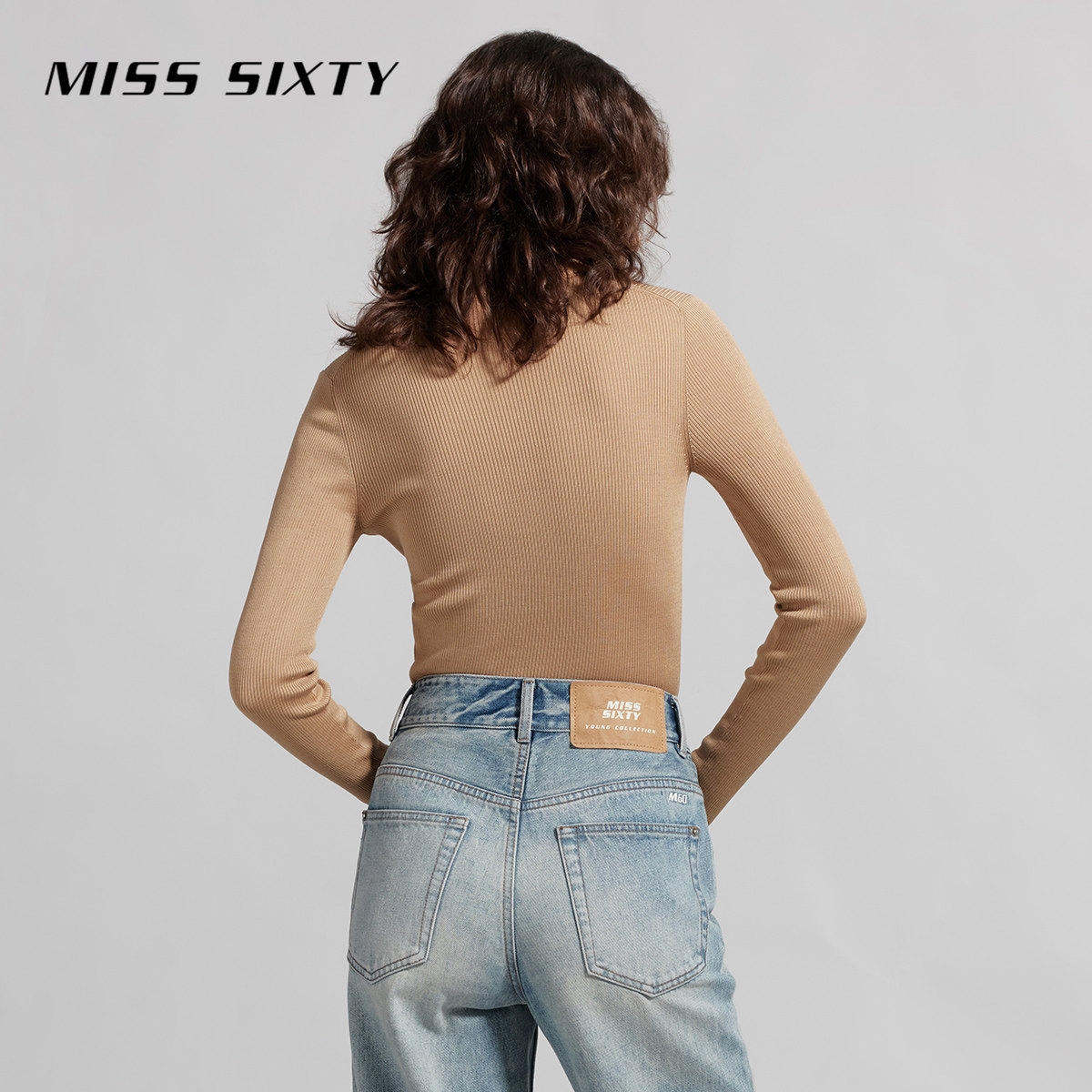 [修身]Miss Sixty含桑蚕丝针织衫女撞色提花罗纹长袖打底毛衣