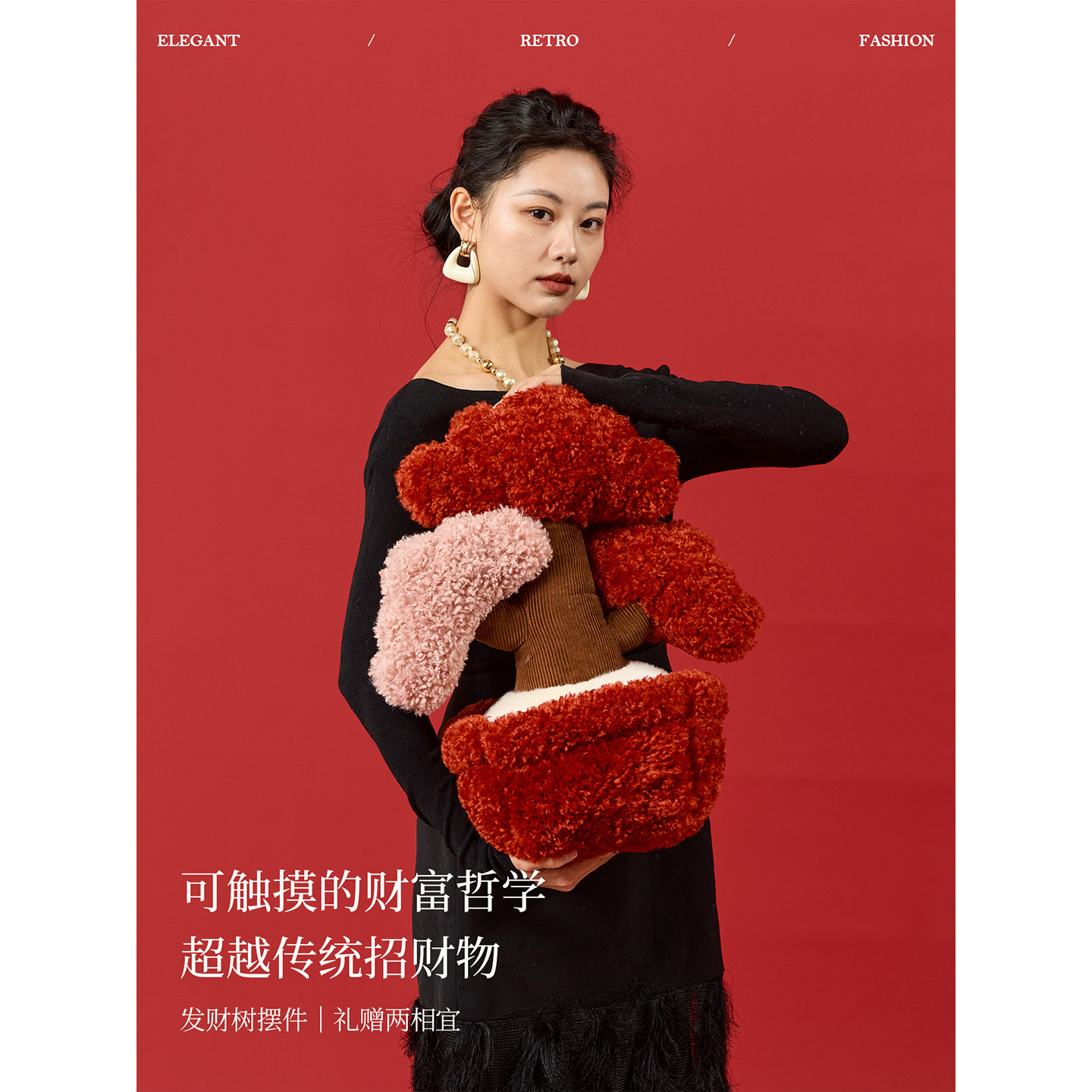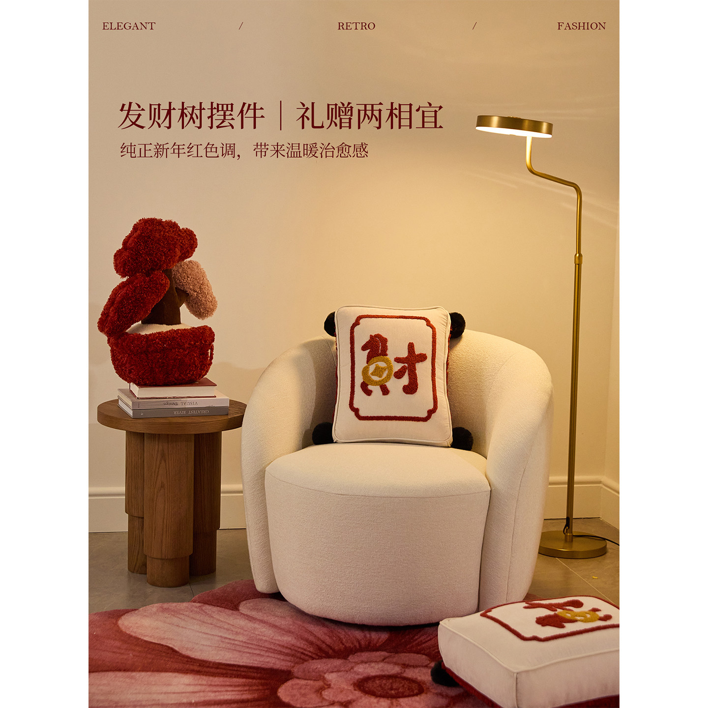 轻奢复古红色系靠垫客厅沙发毛绒摆件礼物