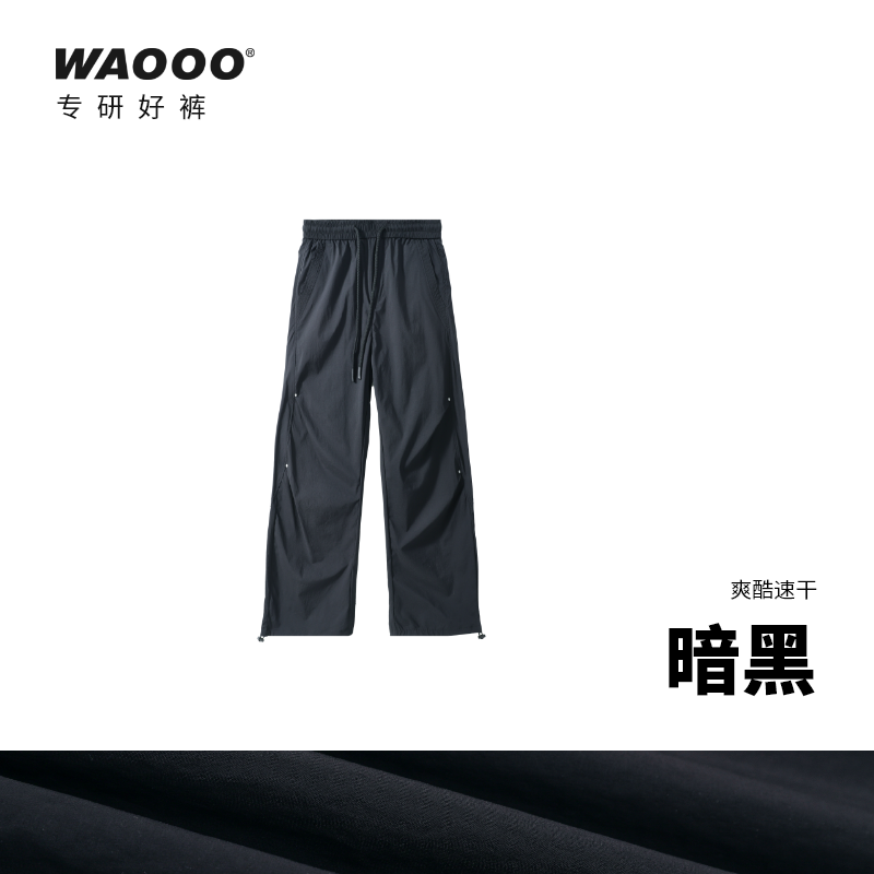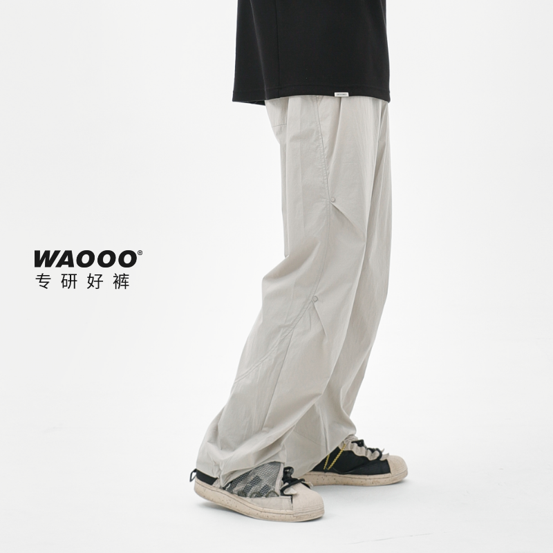 WAOOO 美式铆钉黑色伞兵休闲裤男生潮牌新款宽松直筒褶皱运动长裤