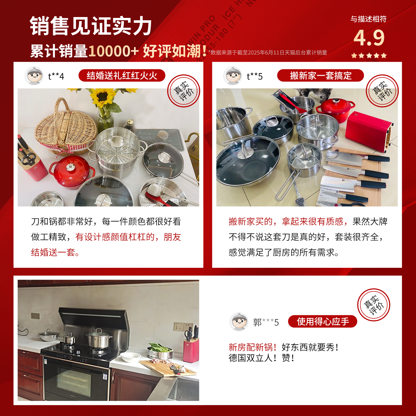 全双立人品牌 刀具升级全钢指撑 蜂窝不粘锅