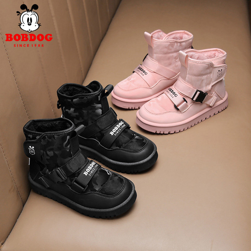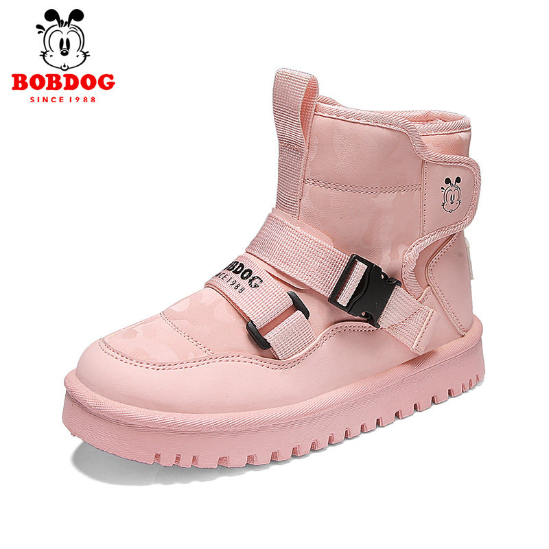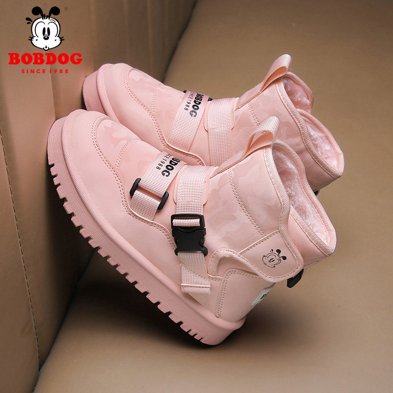 巴布豆女童雪地靴冬季2025新款儿童棉鞋加绒保暖大棉防水棉靴防滑