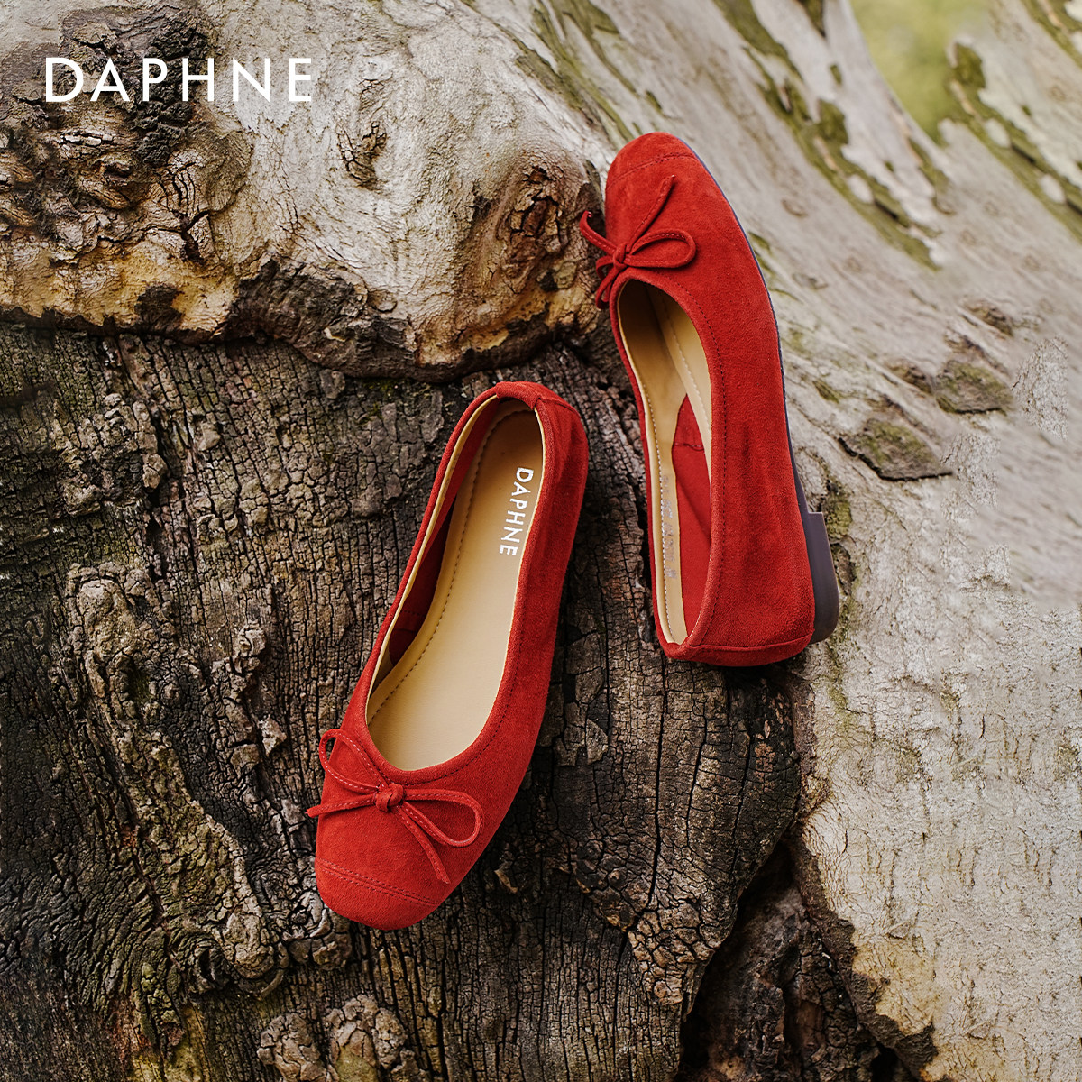 达芙妮羊皮单鞋女2026新款红色平底鞋春季芭蕾法式浅口婚鞋豆豆鞋