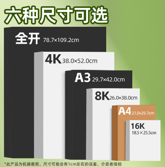 卡纸硬卡纸荷兰白卡纸白色卡纸黑色卡纸牛皮纸a3手抄报专用纸a4纸大张尺寸4k四开8k八开美术画画纸350g绘图纸