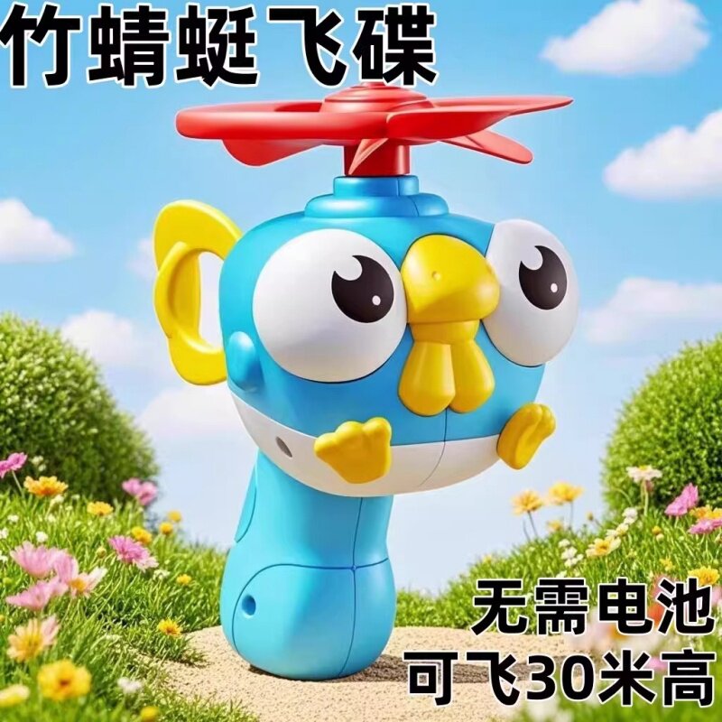 儿童竹蜻蜓宝宝手持拉线飞碟旋转飞盘发射器亲子互动户外玩具男孩