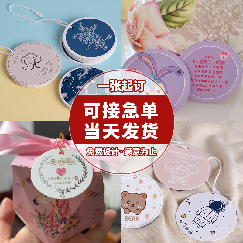圆形吊牌定制女装价格标签圆卡印刷商标pvc挂牌logo卡纸打印服装店衣服产品合格证小吊卡设计伴手礼卡片定做