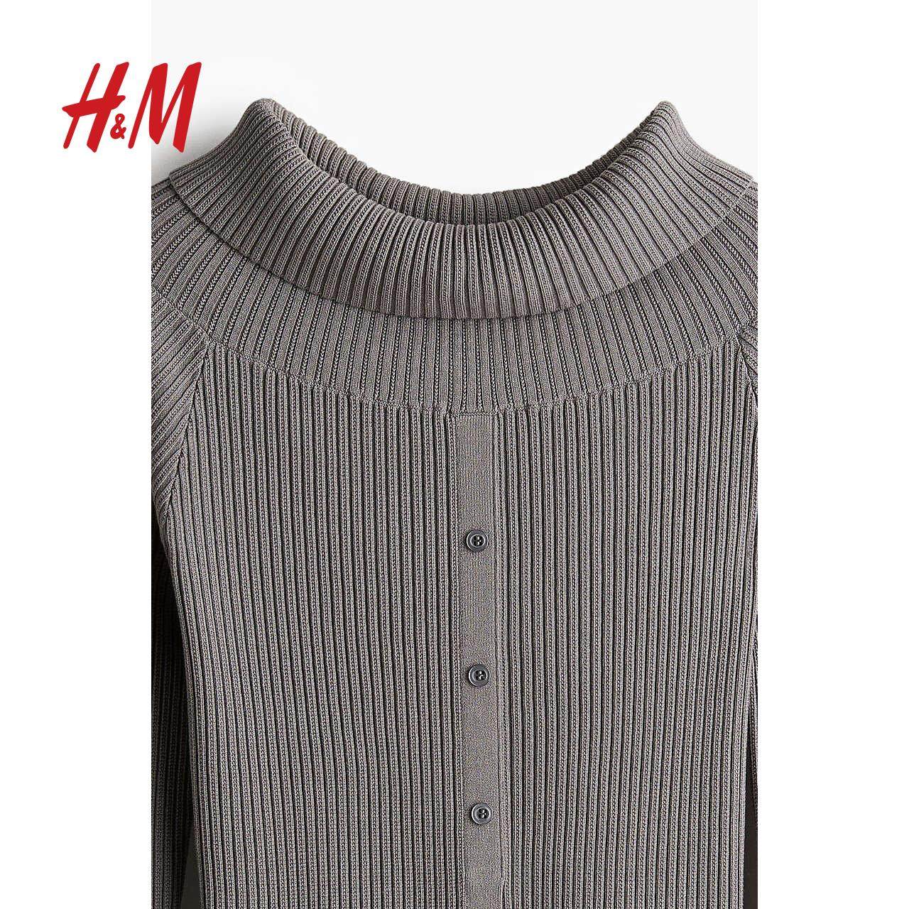 HM女装毛针织衫春节时尚气质一字肩内搭休闲简约露肩上衣1282997