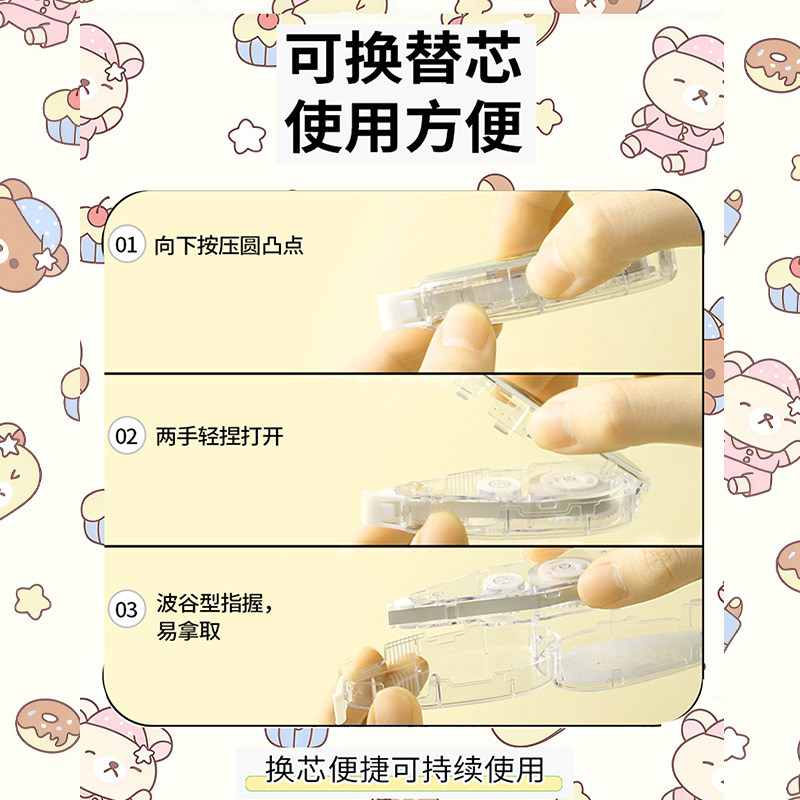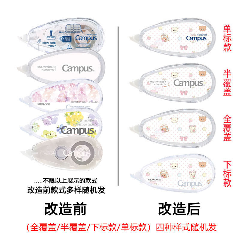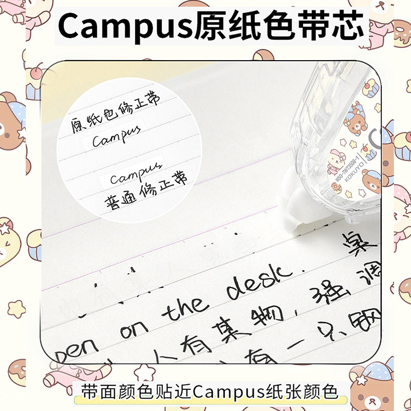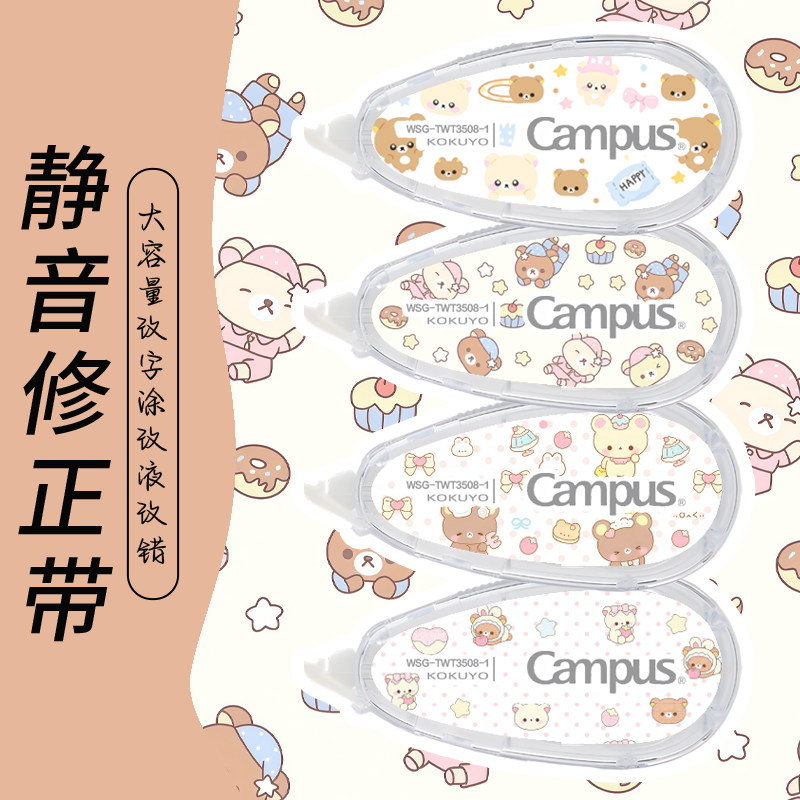 日本Kokuyo国誉修正带Campus系列轻松熊限定DIY款可爱高颜值ins风涂改带初高中生女生可换替芯涂改带原纸色订