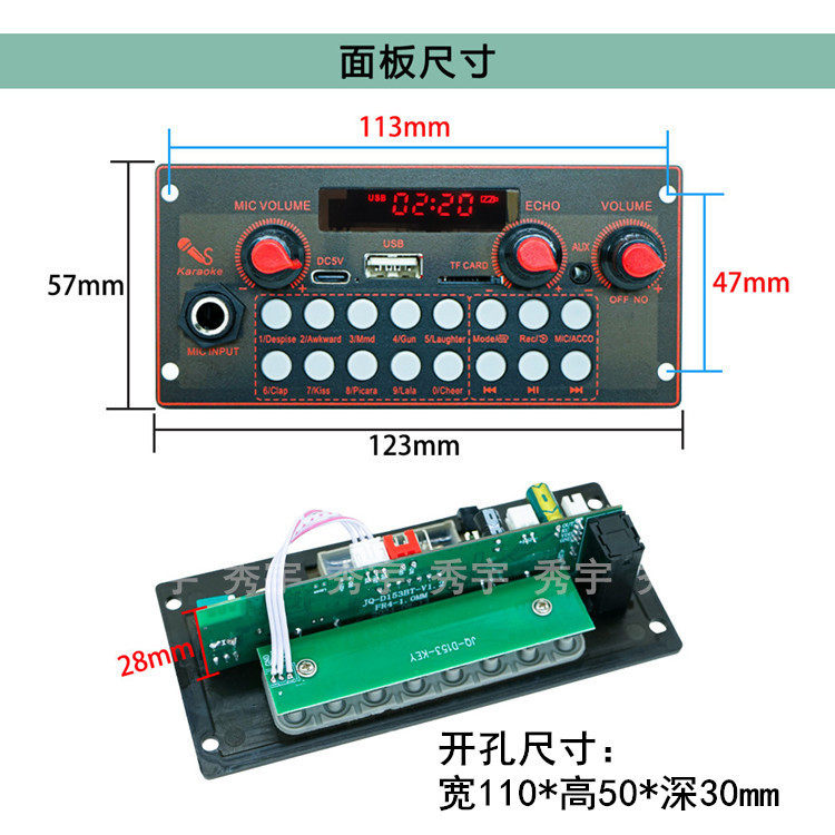 F102多功能手提音响蓝牙功放板5V充电3.7V锂电录音消原音直播音效