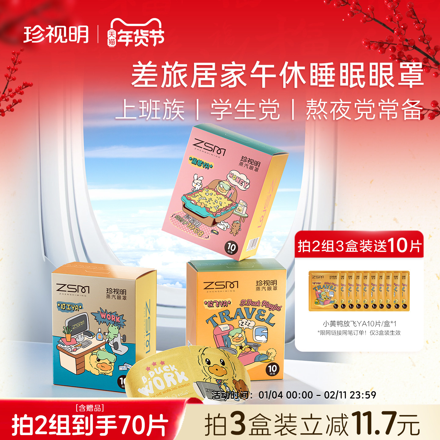 珍视明小黄鸭蒸汽眼罩热敷发热眼罩舒缓眼疲劳遮光透气睡眠眼罩