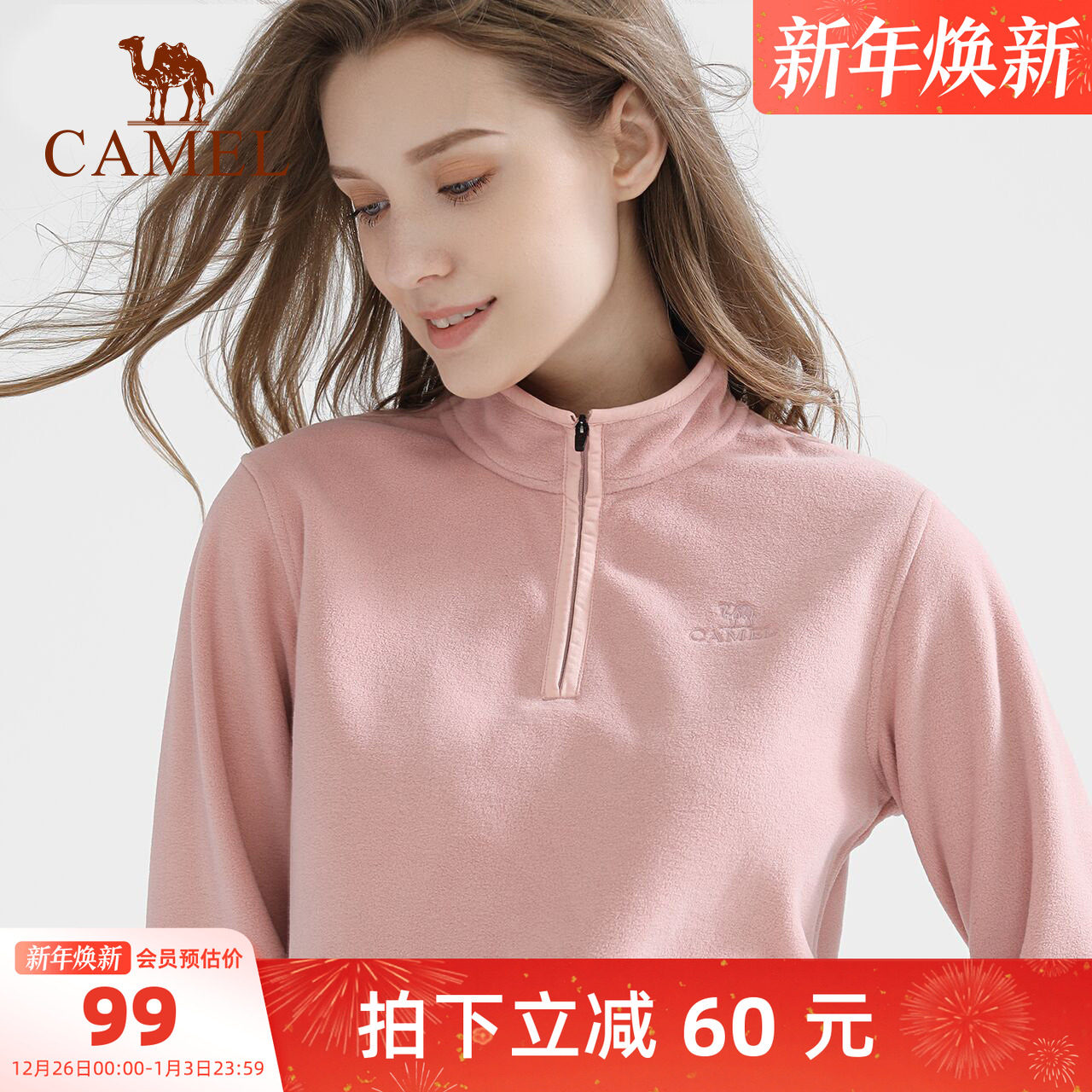 骆驼瑜伽服女时尚套头衫加厚运动服上衣秋冬抓绒衣服长袖保暖外套