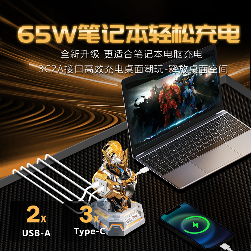 MOSHOW模寿 湖中骑士鎏金版65W快充胸像充电中心氮化镓桌面高达充电器基座手办机甲圣诞礼物送男朋友生日礼物