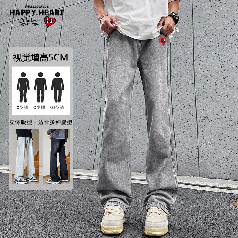 查尔斯桃心 美式高街牛仔裤男夏季薄款宽松微喇弯刀垂感休闲长裤