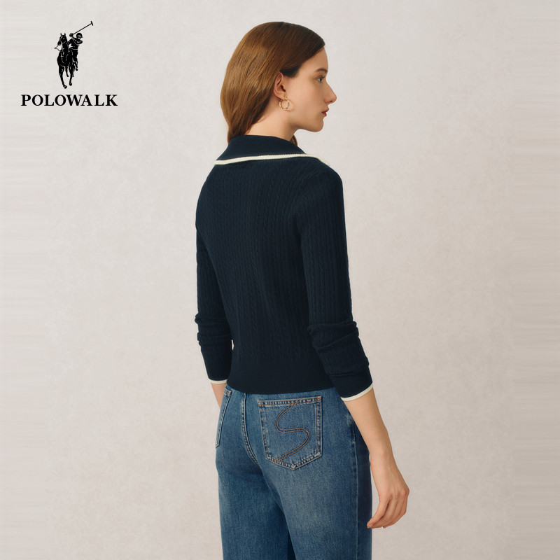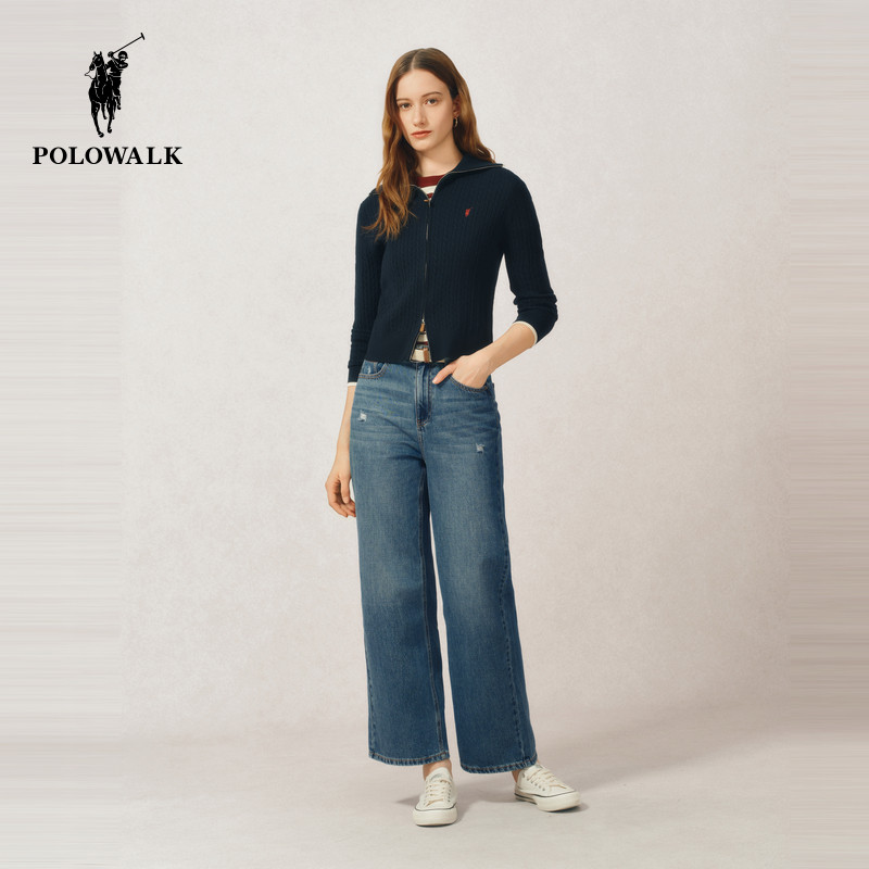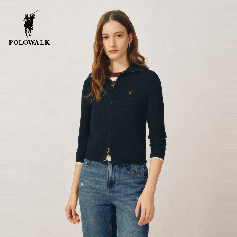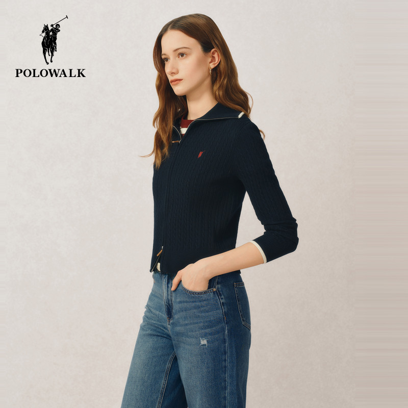 POLOWALK长袖针织衫女式2025秋冬新品显瘦毛衣时尚小香风拉链外套