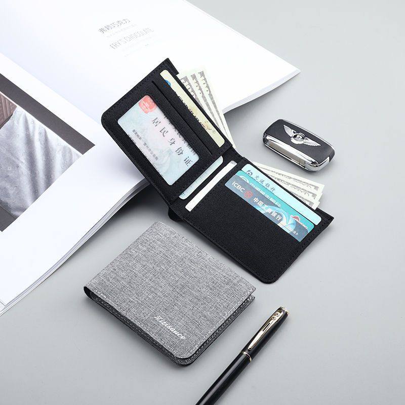 帆布钱包男士短款学生超薄皮夹简约可放驾驶证男式钱夹薄潮牌小巧