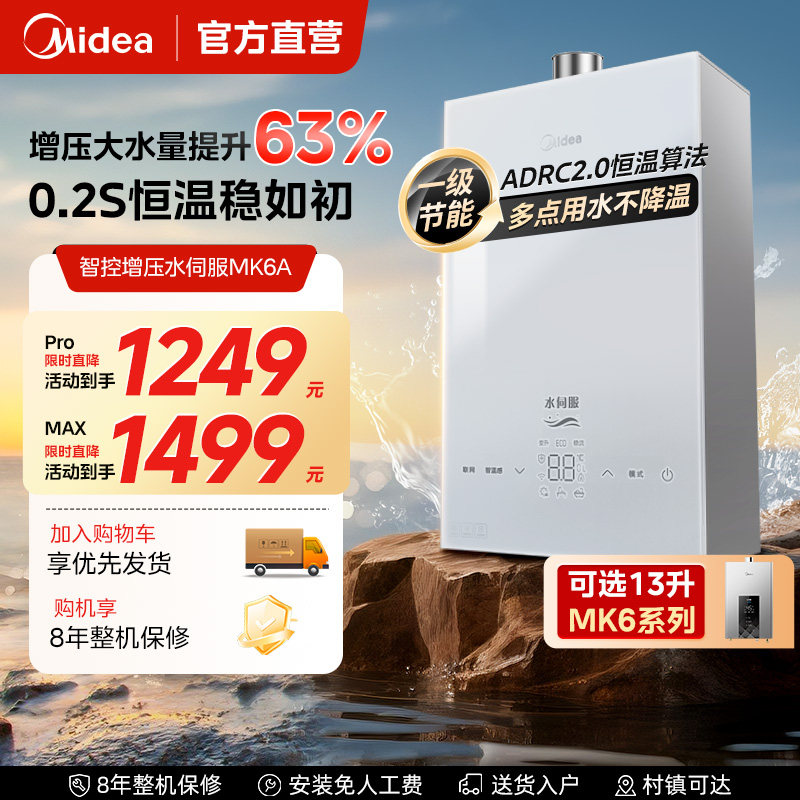 【政府补贴】美的燃气热水器16升MK6A家用天然气恒温增压MK6