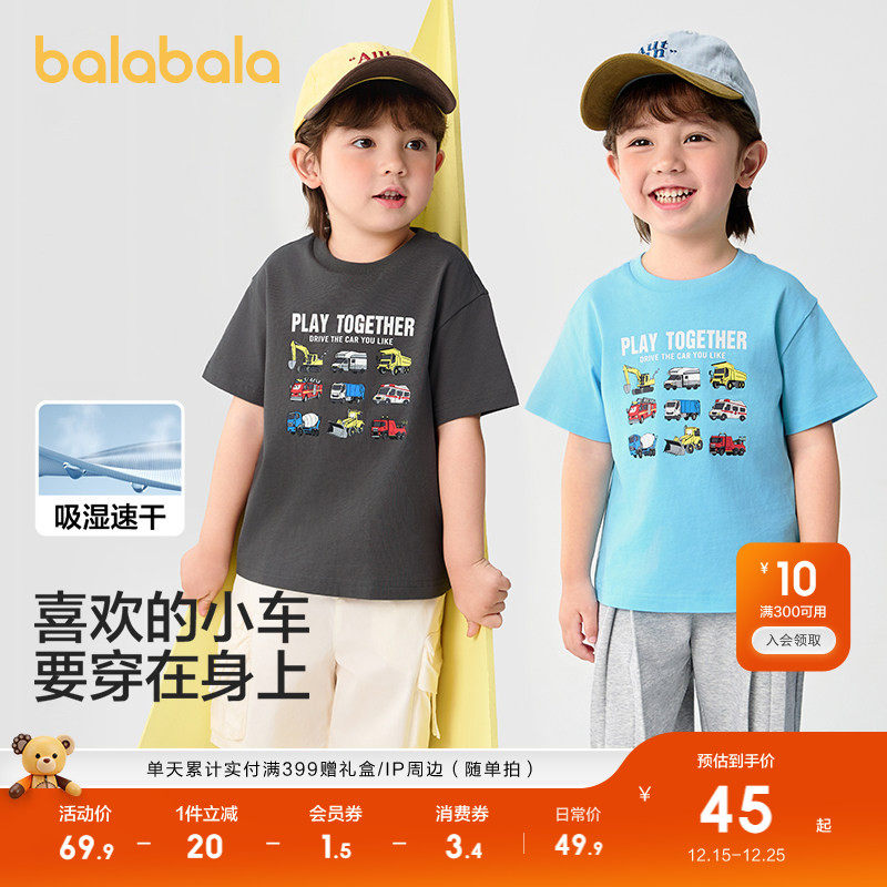 巴拉巴拉童装男童短袖t恤儿童速干衣宝宝2025新款夏装纯棉上衣潮