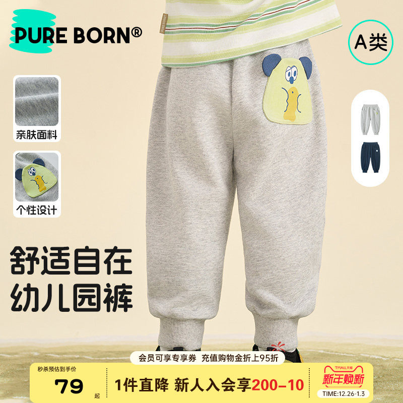 博睿恩男女宝宝长裤2025春秋新款儿童休闲运动纯棉裤子亲肤柔软