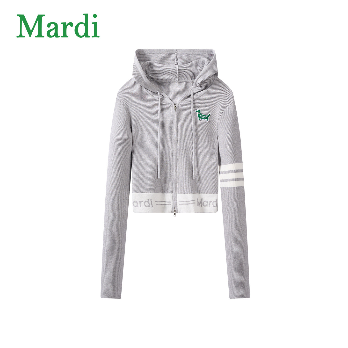 MARDI卡通小狗毛衣女连帽针织衫长袖百搭显瘦开衫刺绣藤蓝少女