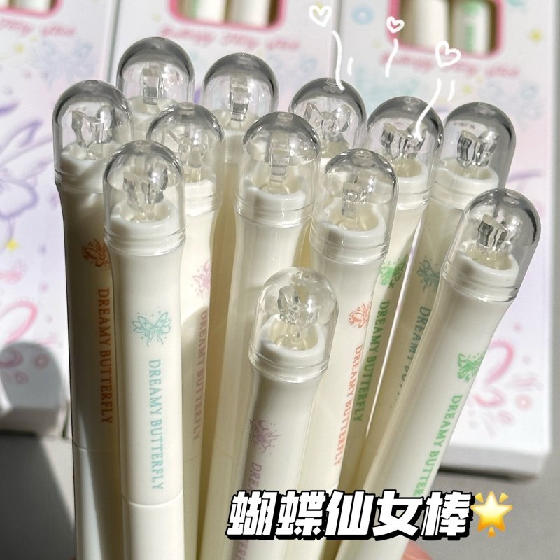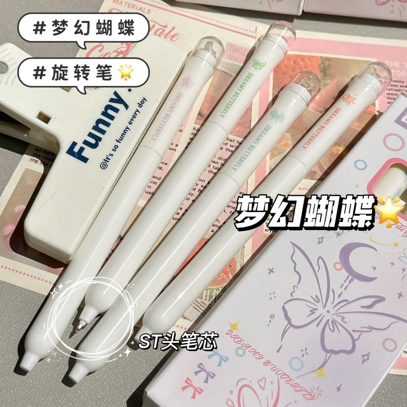 原创蝴蝶仙女棒旋转出芯中性笔高颜值ins风学生考试0.5黑色刷题笔