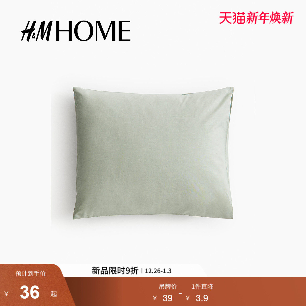 HM HOME床上用品枕套新年棉质柔软舒适梭织枕套0824403