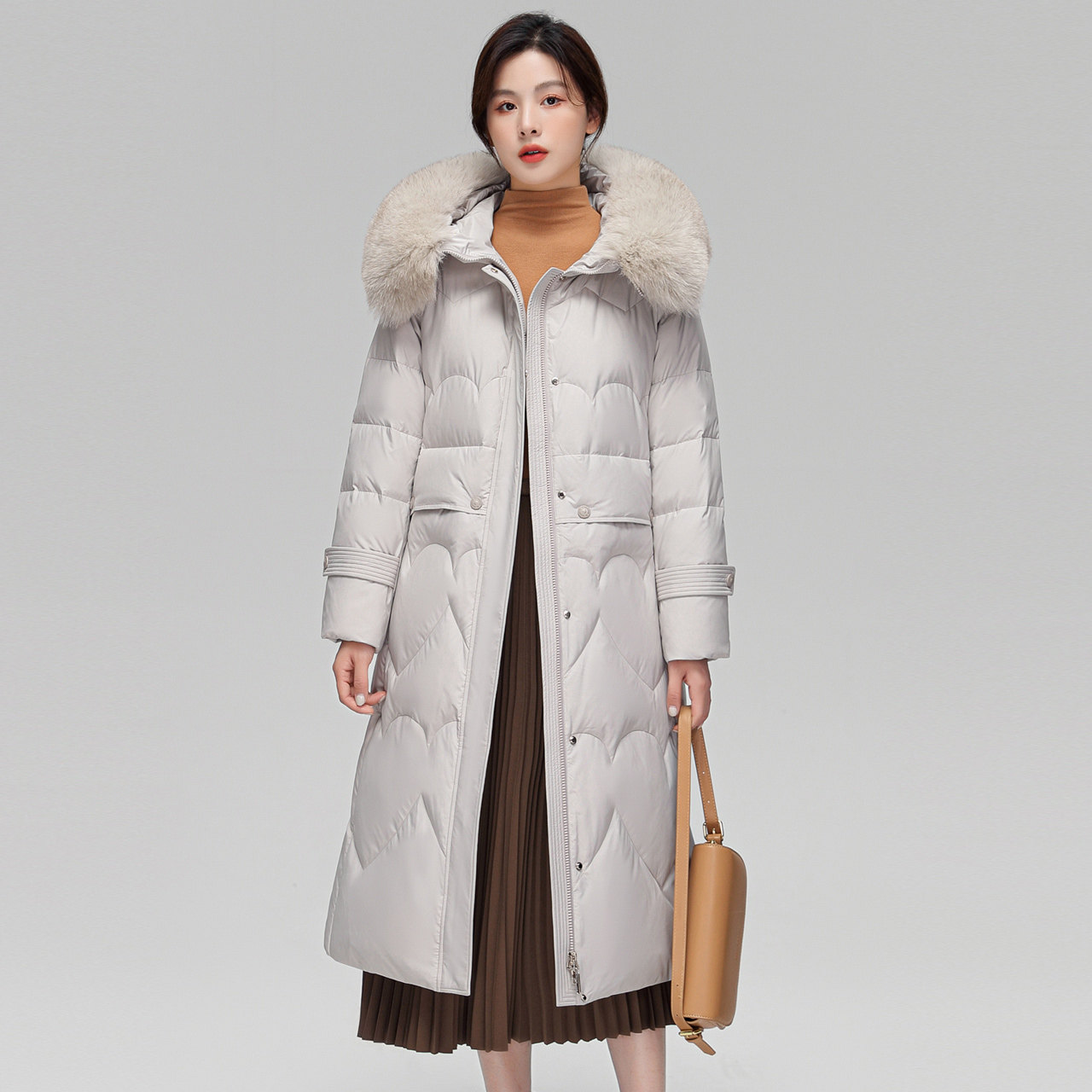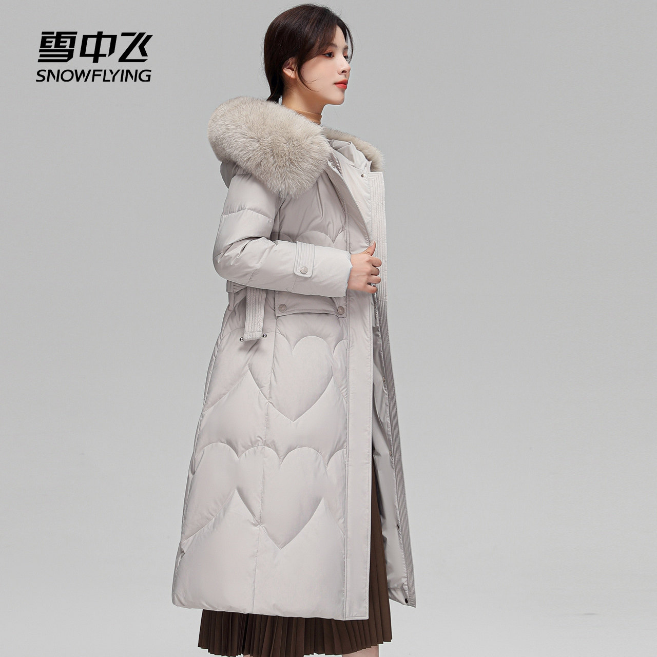 雪中飞冬新款轻奢保暖狐狸毛领修身显瘦女士长款羽绒服