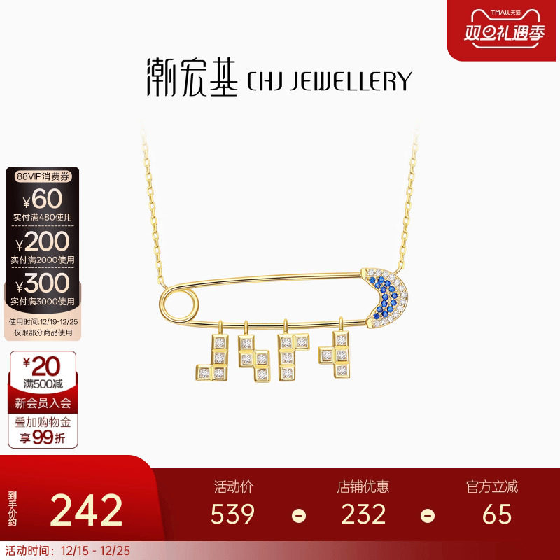 潮宏基S925银项链ins风欧美简约设计锁骨链礼物女套链生日礼物