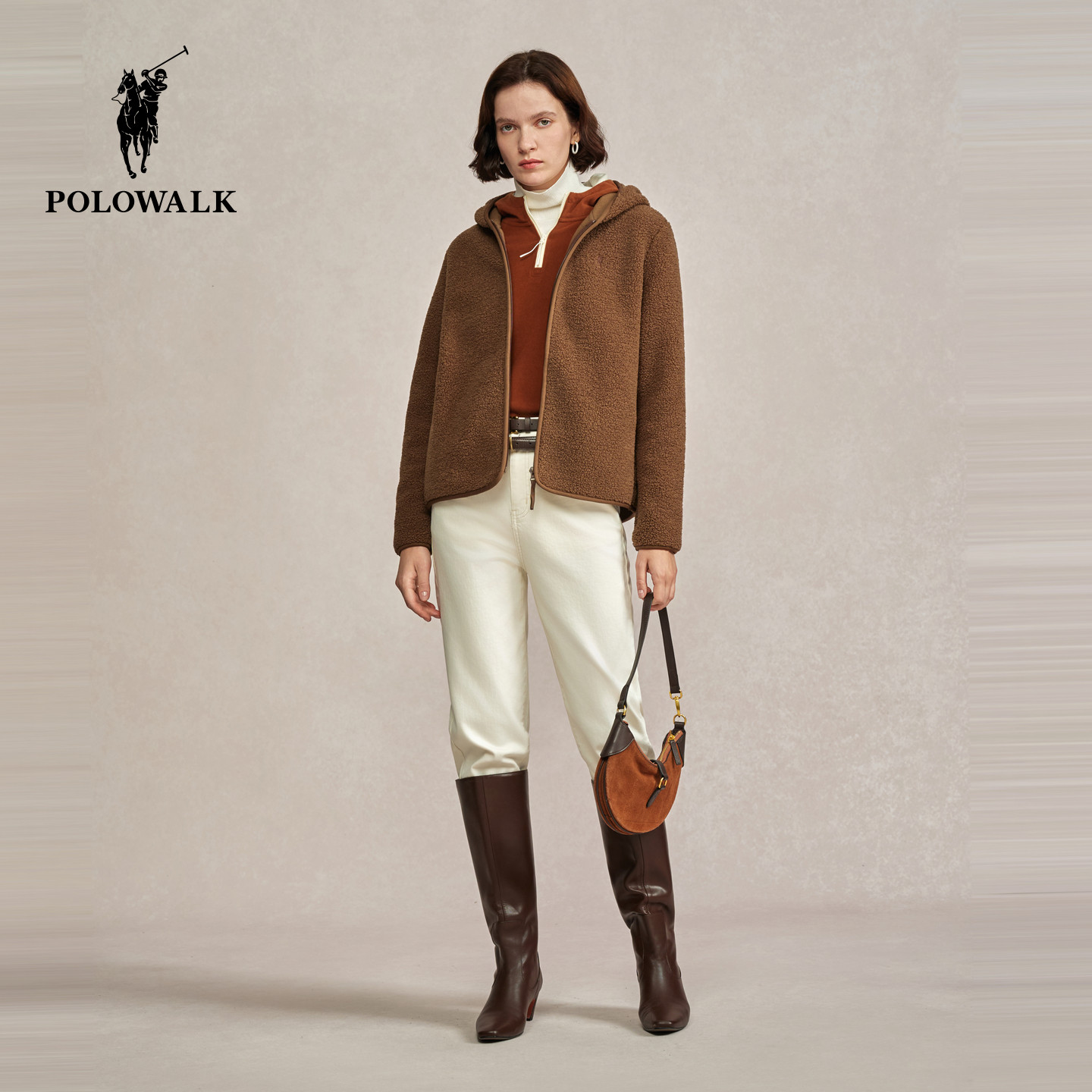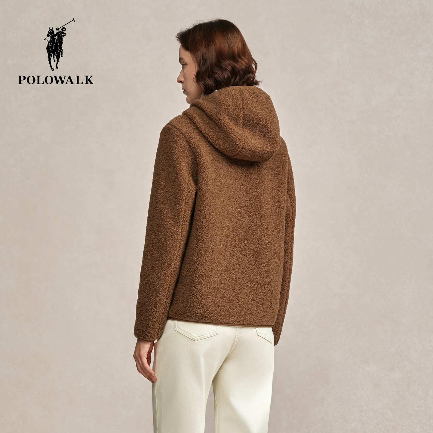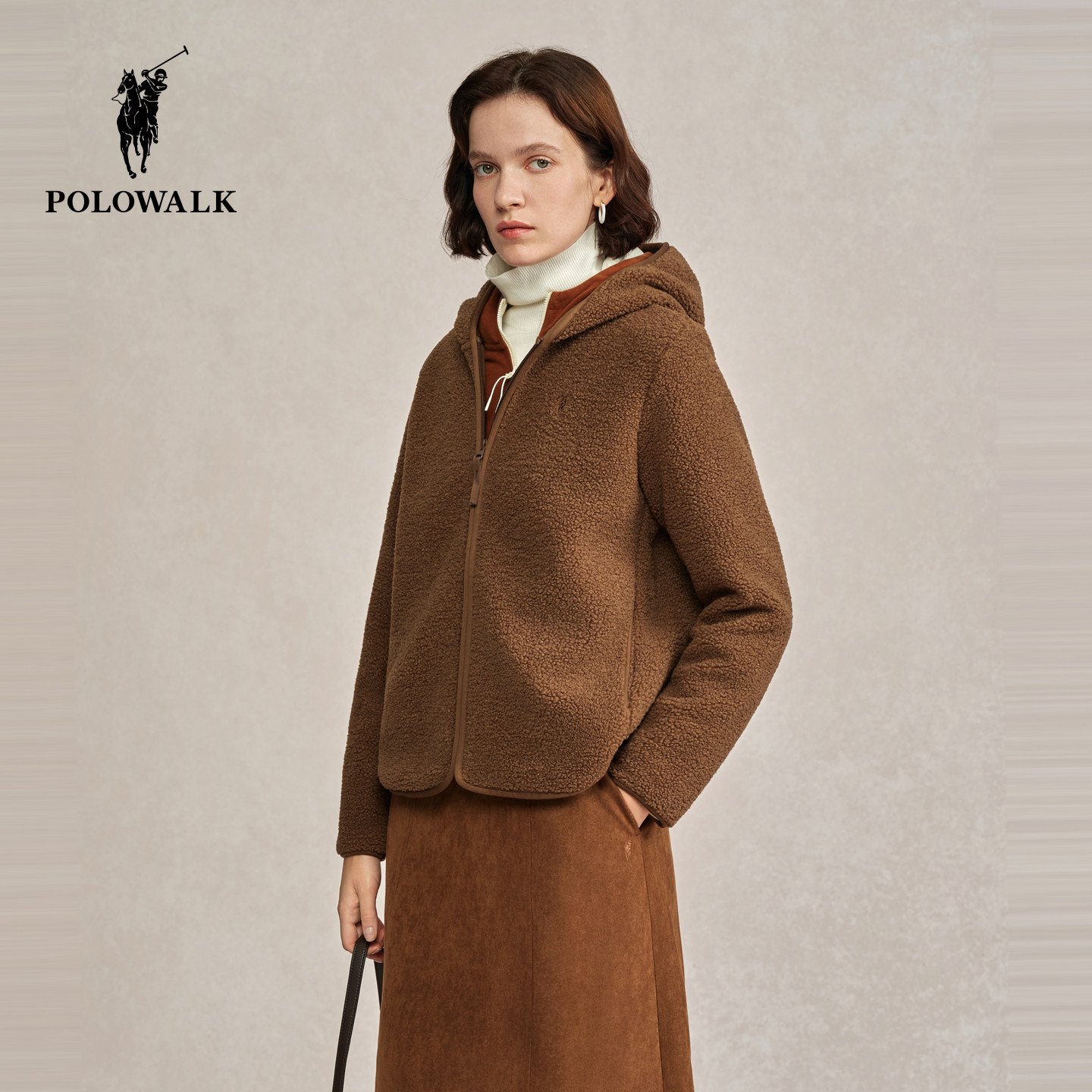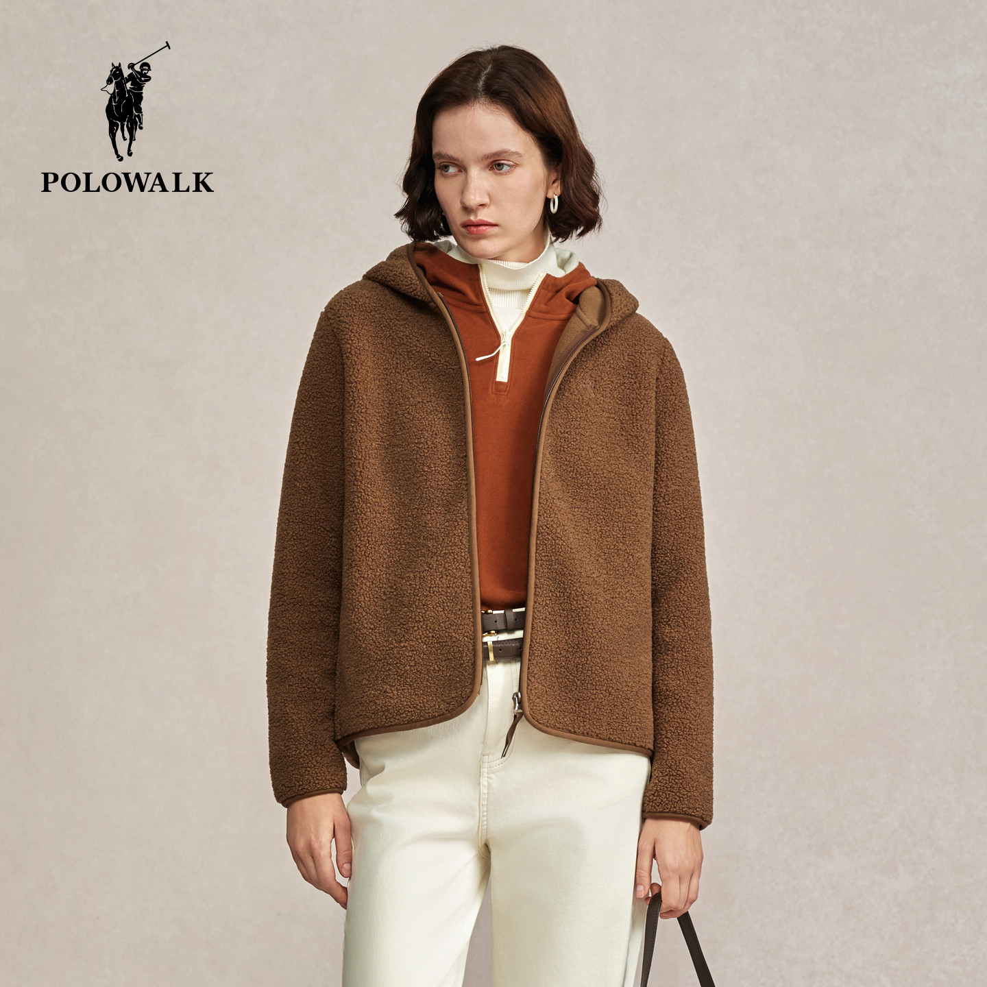 POLOWALK女装外套2025秋冬新款连帽摇粒绒外套加绒拉链上衣冬装女
