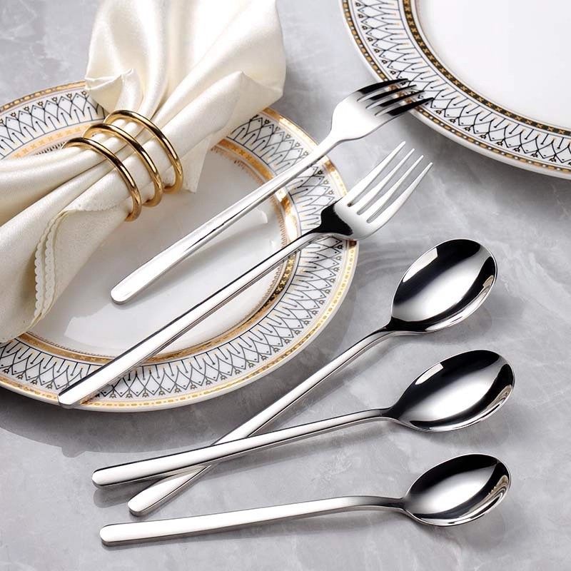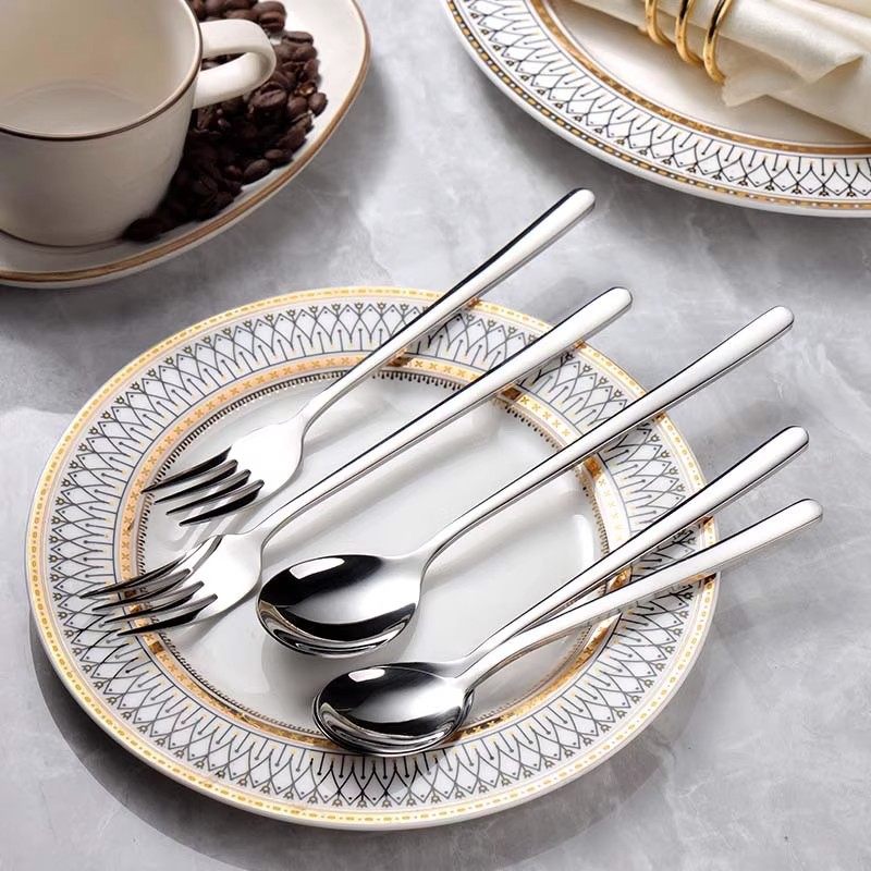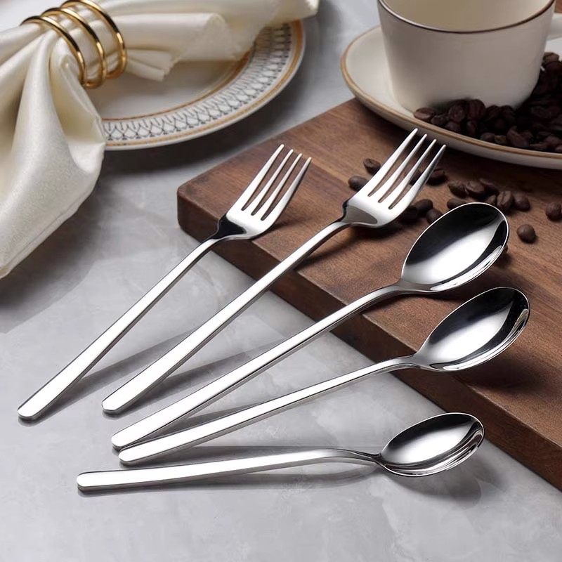 316不锈钢勺子叉子餐具套装304汤勺家用食堂创意勺叉调羹勺长柄