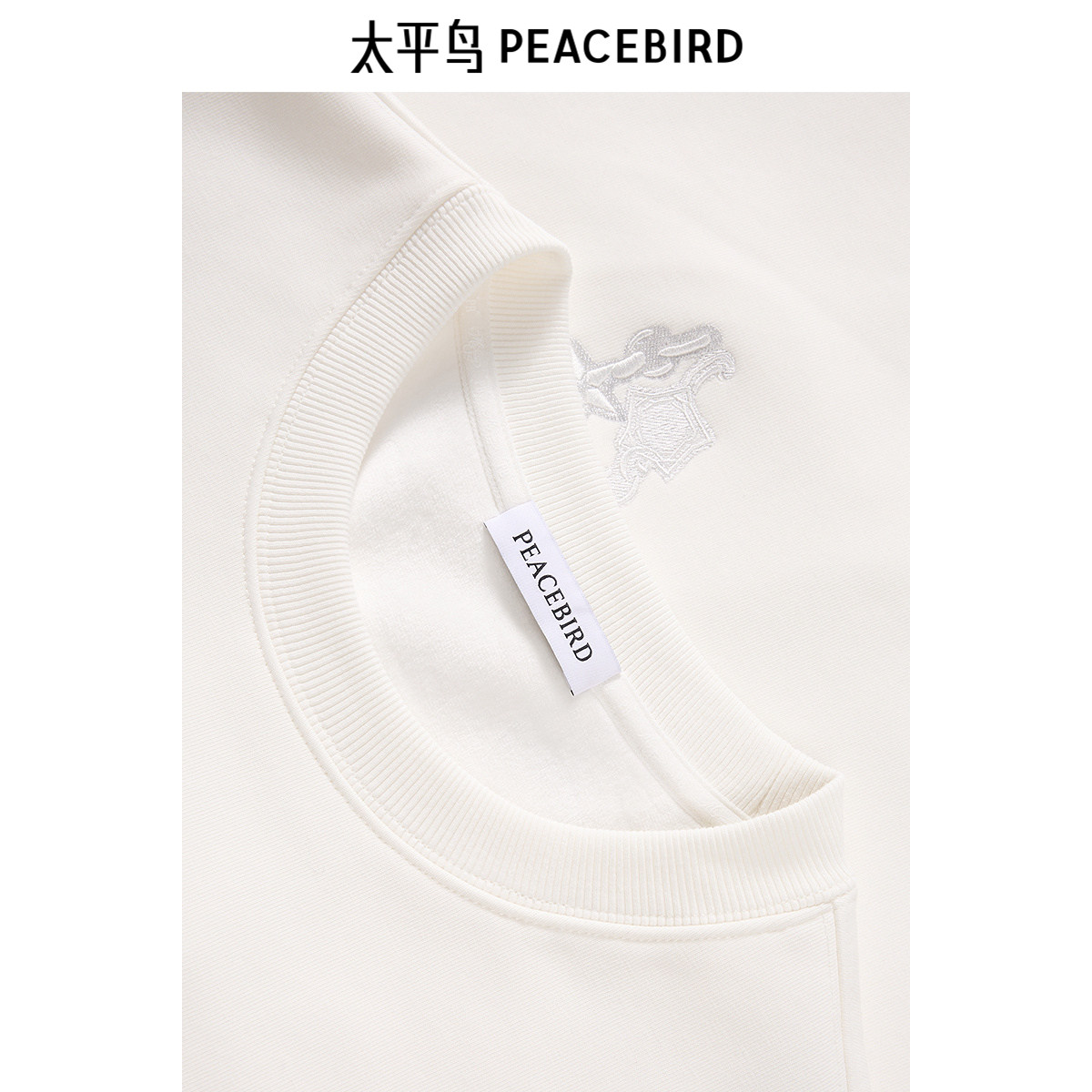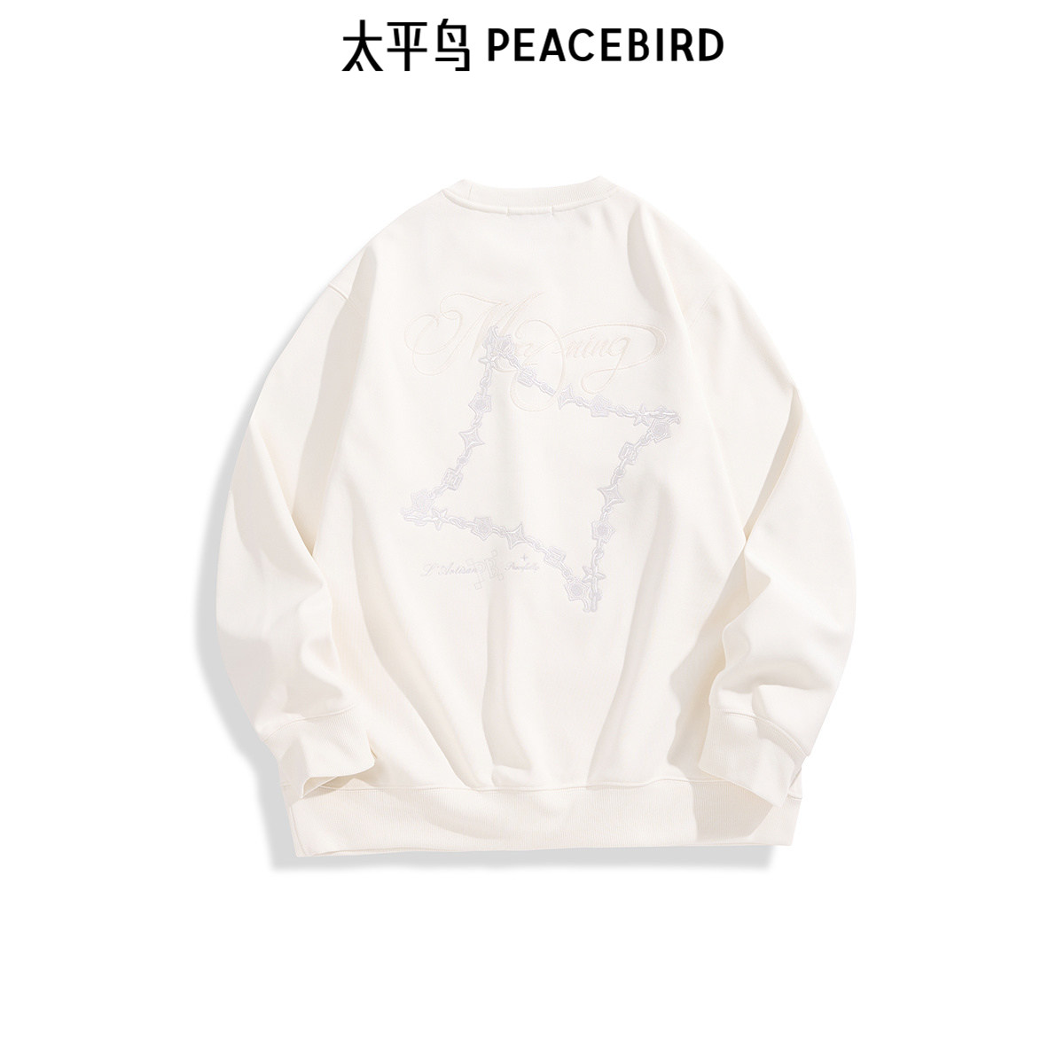 太平鸟男装重磅卫衣圆领刺绣上衣秋冬季时尚休闲纯色上衣套头衫