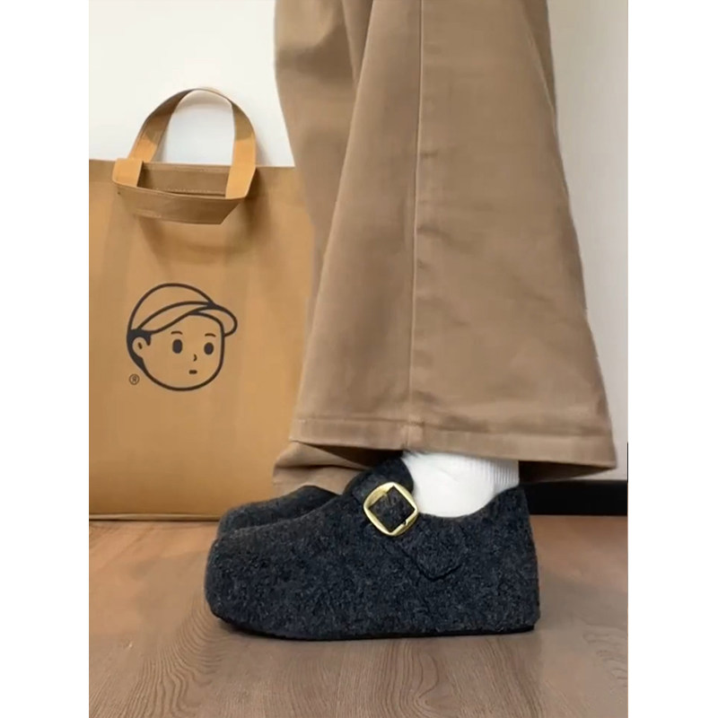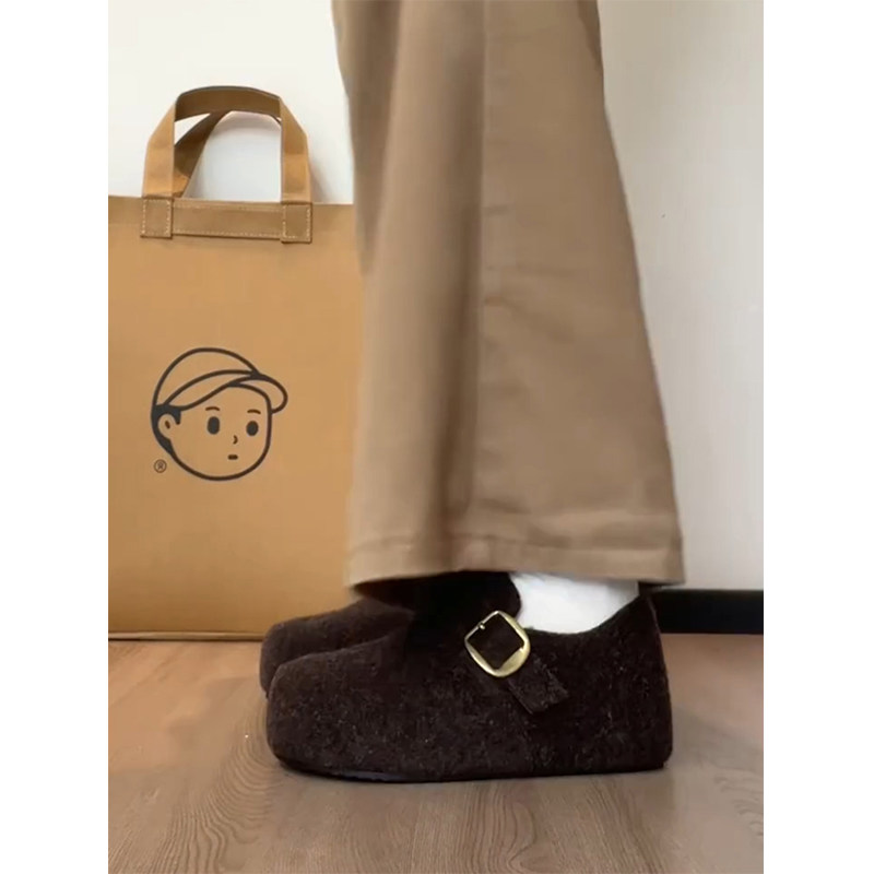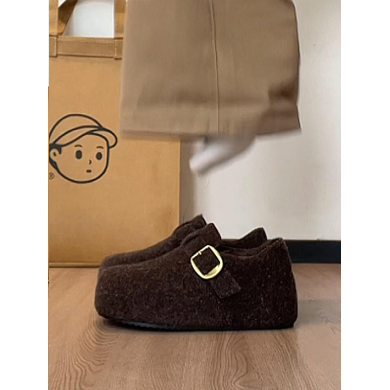 TATAFOCUS~加绒毛毛鞋韩版圆头皮带扣2025冬季新款勃肯鞋女35-28