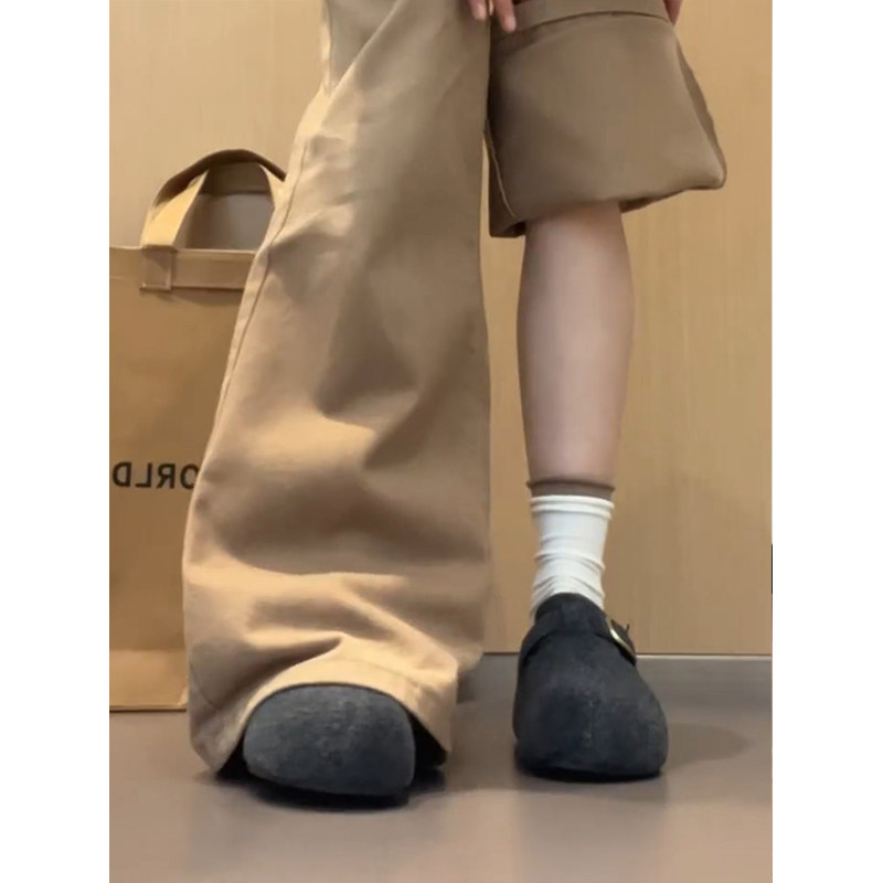 格雷灰色复古内增高勃肯鞋女2025秋冬新款一脚蹬加绒保暖厚底棉鞋