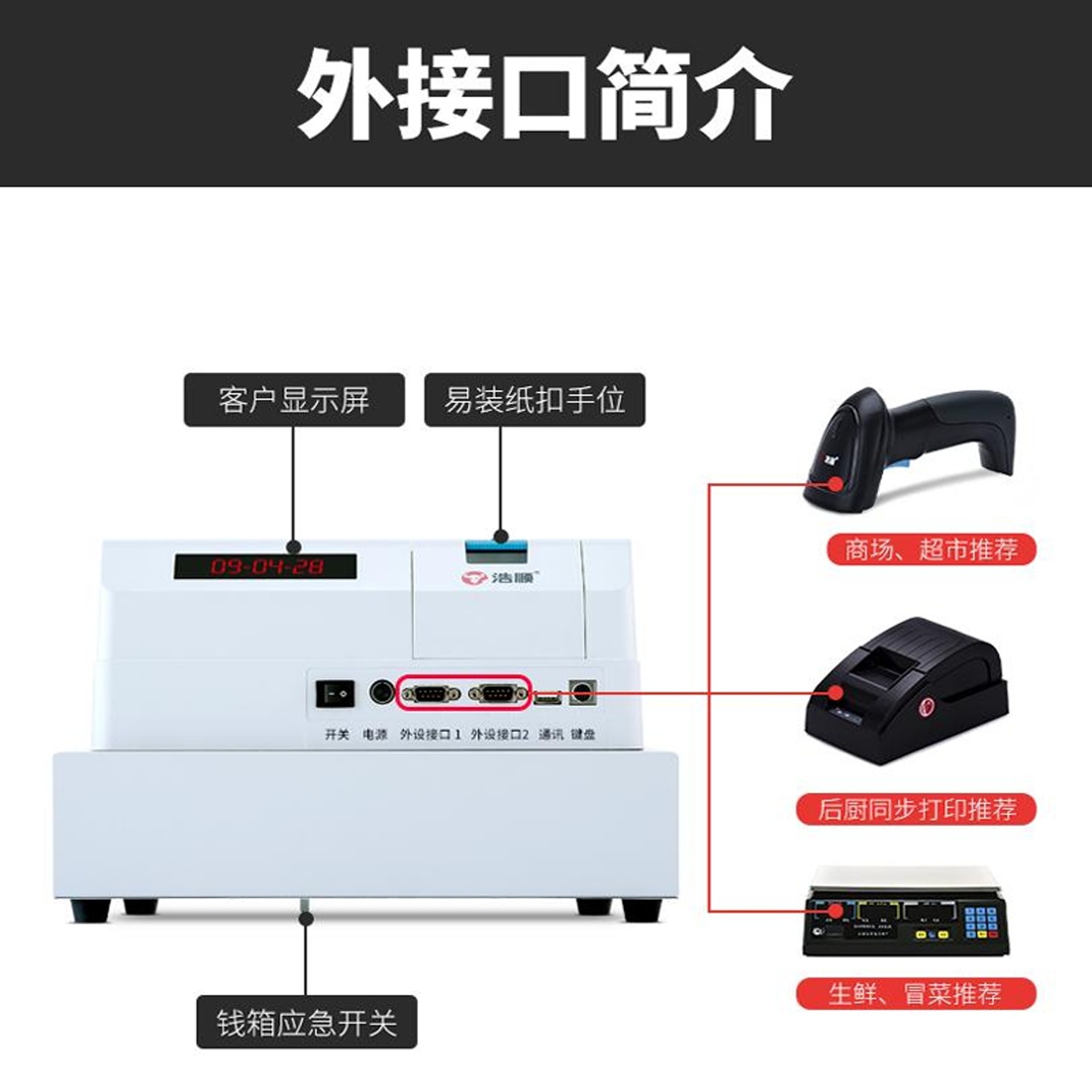 浩顺T71-30电子收款机服装餐饮便利店点餐机收银机一体机打印简单超市小卖部简易收钱机打票点单机英文ECR