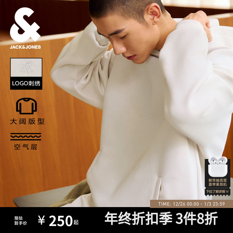 【空气层卫衣】杰克琼斯25秋季新款连帽宽松卫衣外套男装刺绣连帽