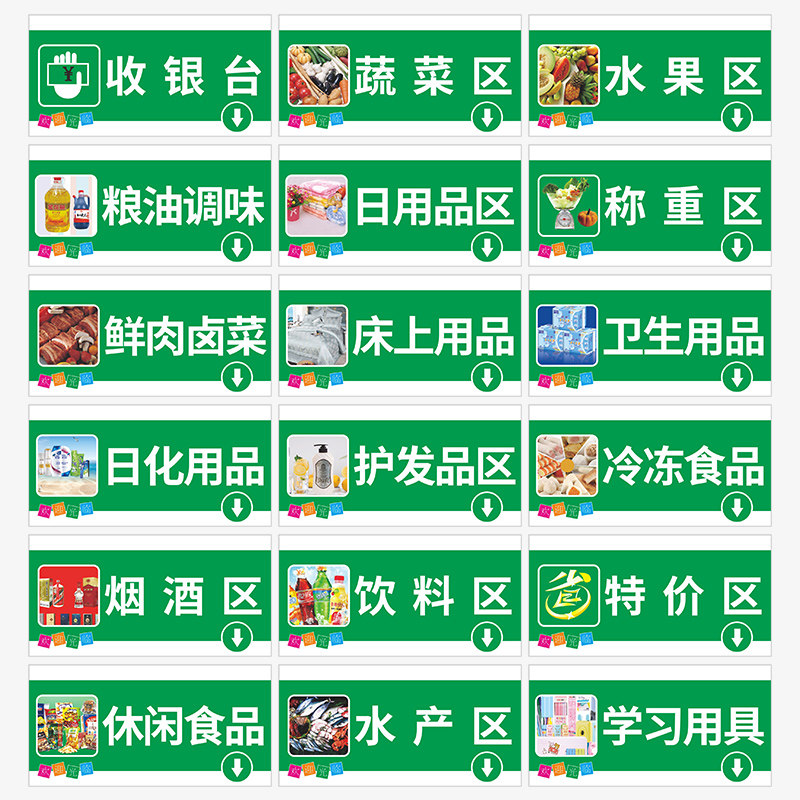 超市分区吊牌双面挂牌商场卖场便利店区域分类指示牌蔬菜水果区粮油调料日用品文具区收银台称重区标识牌定制
