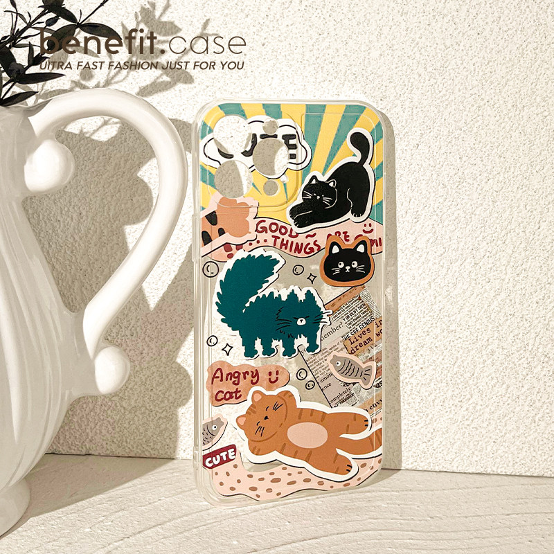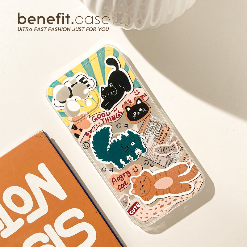 benefit可爱猫咪动物世界17pro16适用于iphone15promax苹果15PRO手机壳13新款14套12小众11透明xsmax硅胶xr防