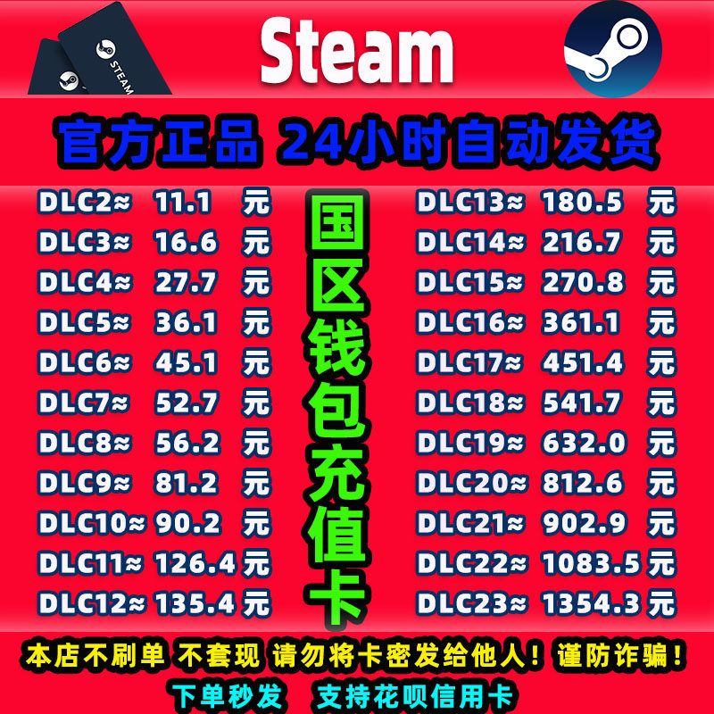 Steam中国区充值卡cdk钱包充值码余额账户充钱卡礼品卡钱包兑换码