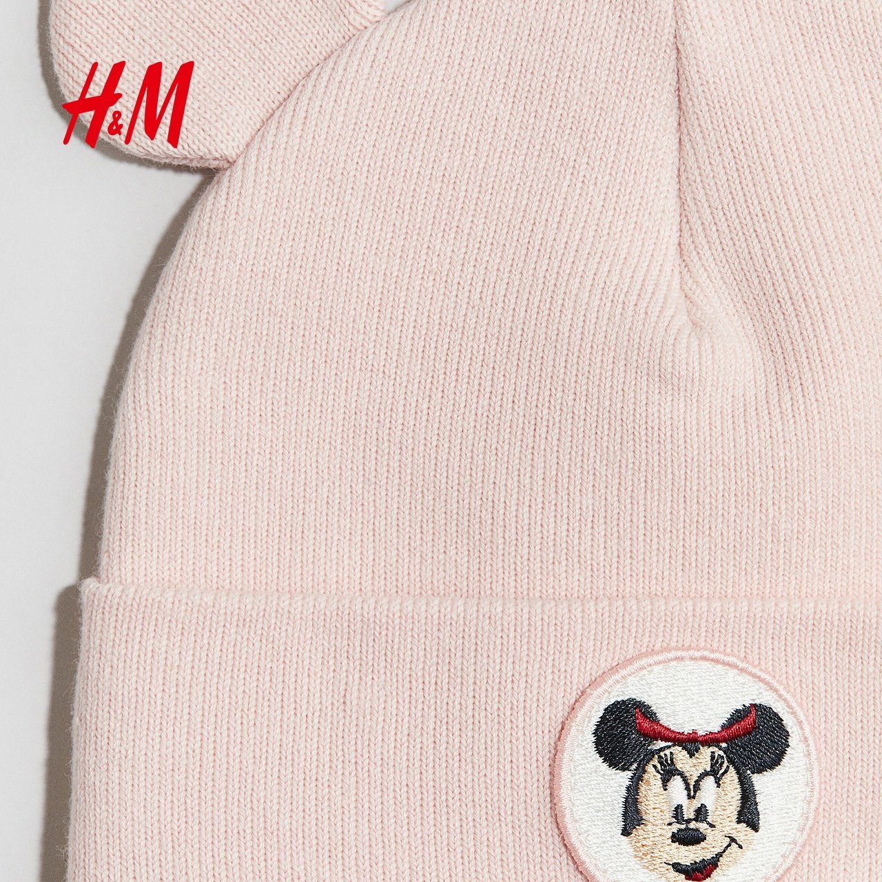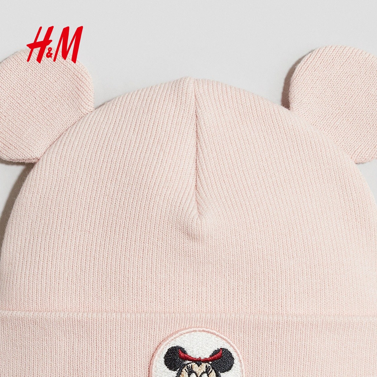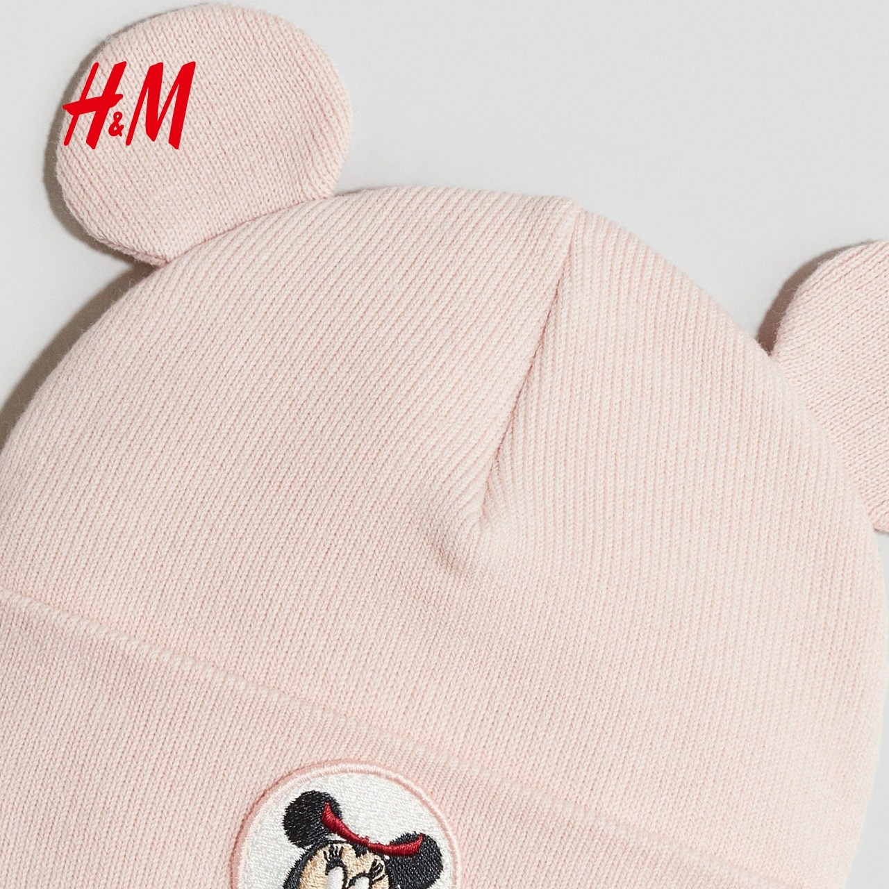 HM童装女婴帽子2025冬季新款米奇贴花棉质针织贴花豆豆帽1178410