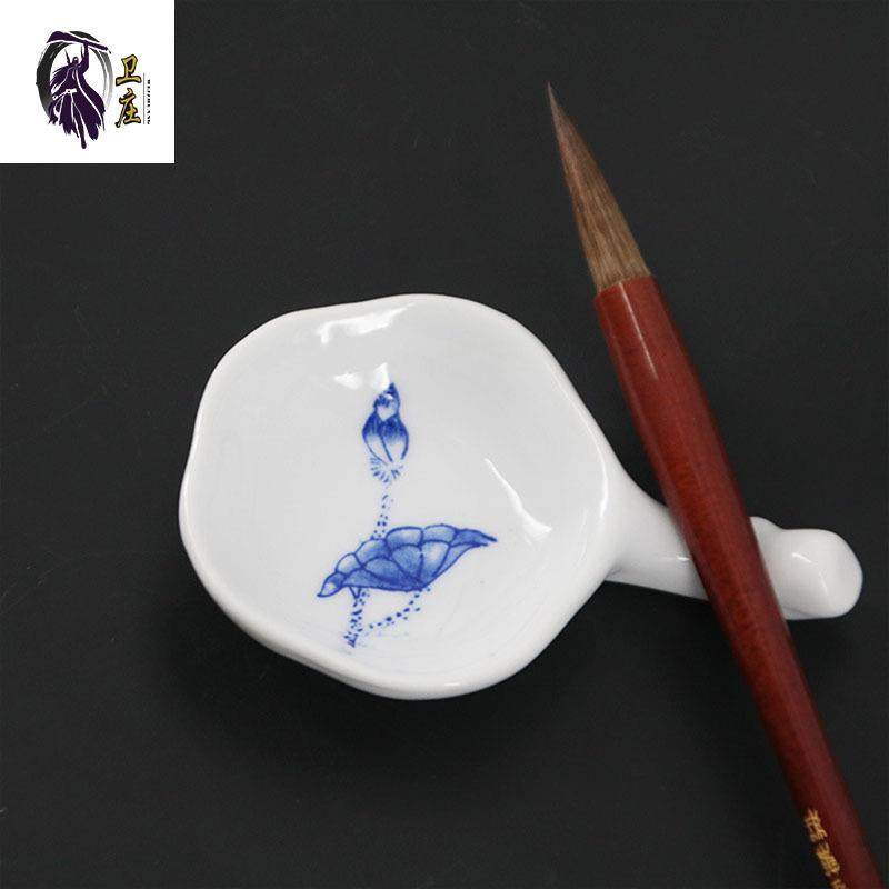 厂家毛笔水碟 陶瓷两用笔洗笔搁 文房四宝墨碟 梅花水碟笔架