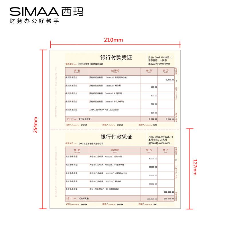 西玛凭证纸SKPJ101金额记账凭证打印纸用友软件T3 T6 U8 NC 财务会计套打凭证封面凭证盒西玛黄凭证表单耗材